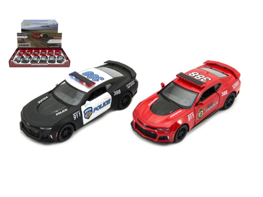 Auto Kinsmart Chevrolet Camaro policie/hasiči 12cm kov/plast 2 barvy na zpětné natažení (1 ks)