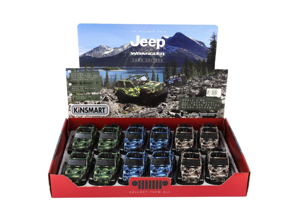 Auto Kinsmart Jeep Wrangler Camo Edition kov/plast 13cm 3 barvy na zpětné natažení (1 ks)