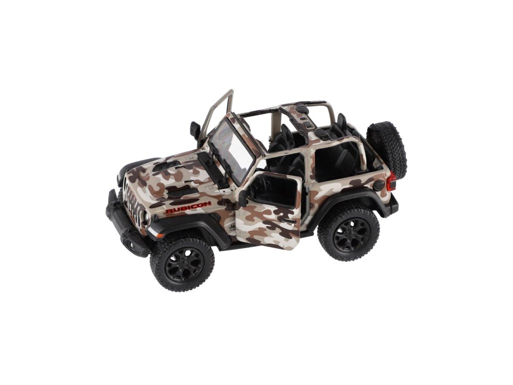Krásný kovový model auta Jeep Wrangler Camo Edition 1:34. Autíčko má otevírací dveře a je na zpětné natažení. Dostupné ve třech barevných variantách.