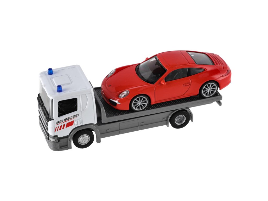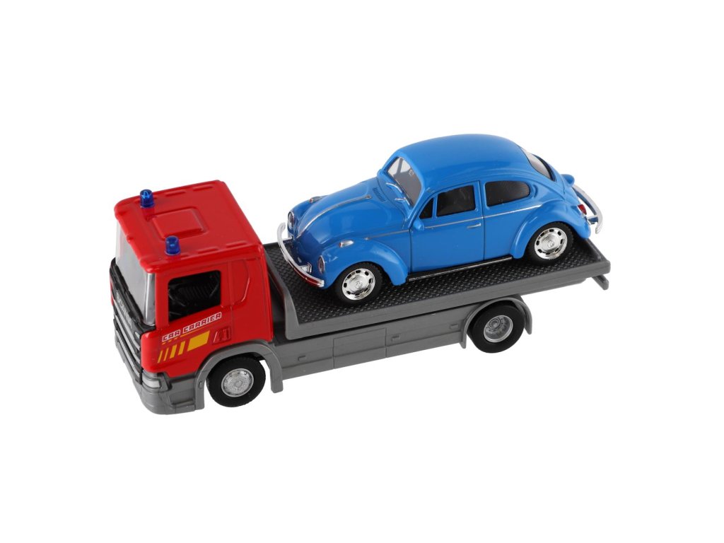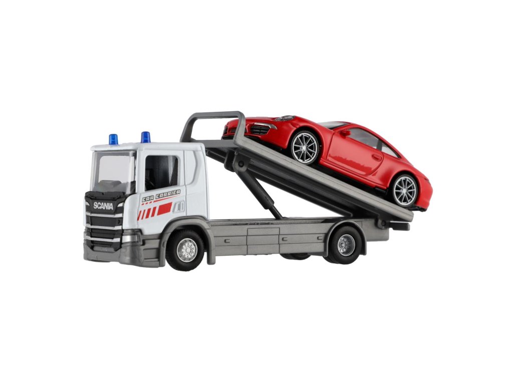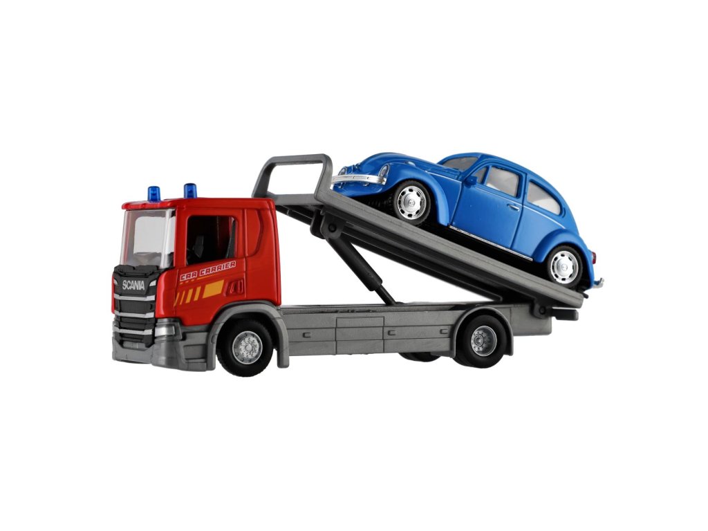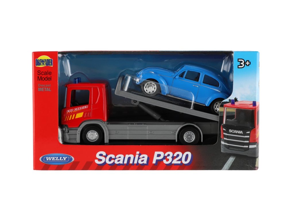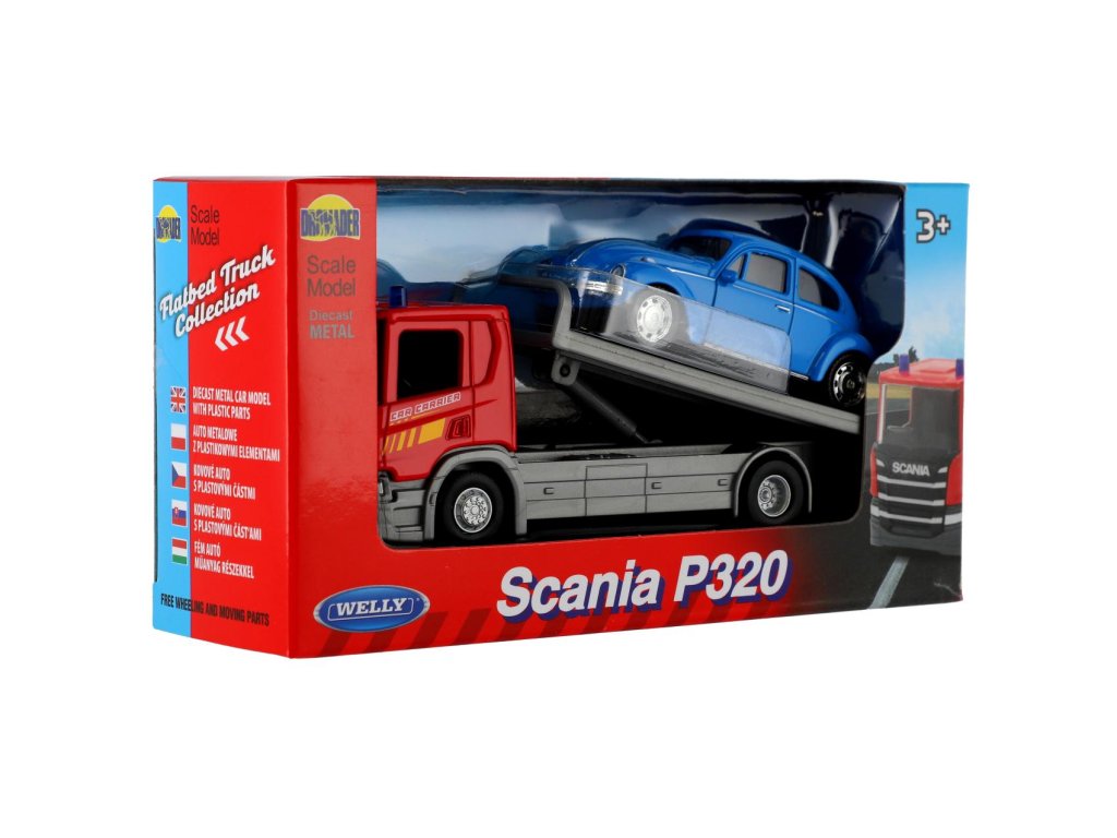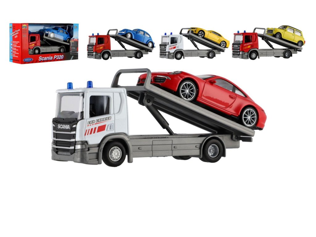 Auto odtahovka Welly Scania P320 + auto kov/plast 15cm mix druhů v krabičce 18,5x10x6cm