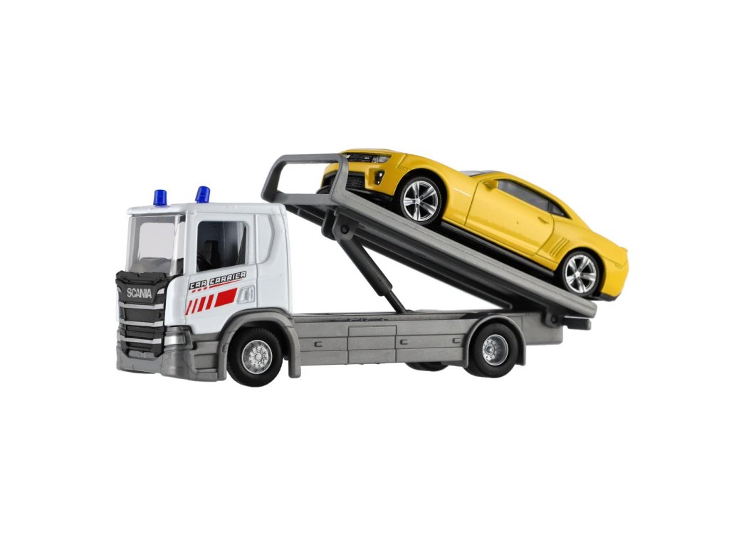 Auto odtahovka Welly Scania P320 doplní každý vozový park. V balení najdete i auto, obě auta jezdí na volný chod.Rozměr odtahovky: 15 cm