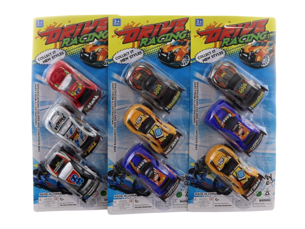 Sada plastových autíček na kartě. Mix barev - dodáváme dle skladové dostupnosti. Rozměry autíčka cca 9x3x5 cm. Rozměry balení 14x31x4 cm. Věk 3+Doplňkové parametry