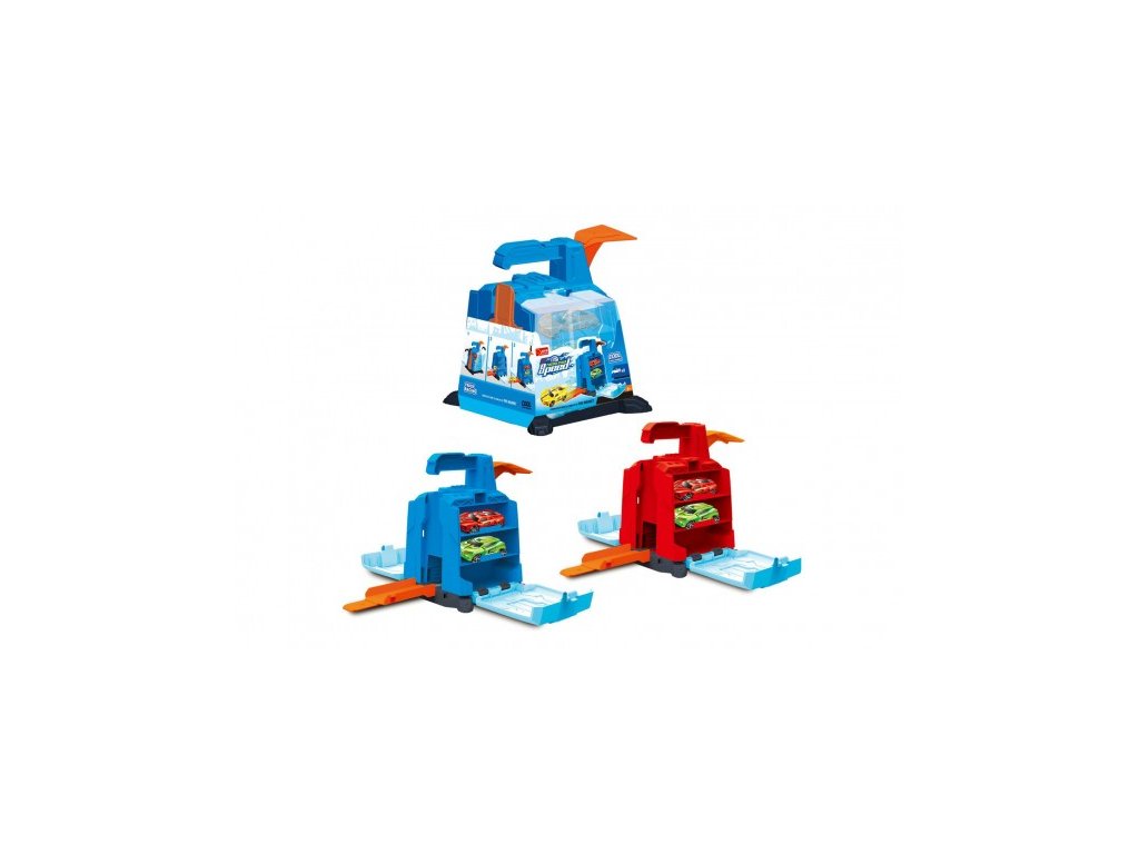 Zábava může začít! Kompaktní plastová garáž s vystřelovacím mechanismem poskytuje akční start pro dvě přiložená autíčka. Stačí je nasadit, zmáčknout a pozorovat, jak vyrazí do závodu! Ideální hračka pro malé motoristy, která rozvíjí postřeh, koordinaci i fantazii.