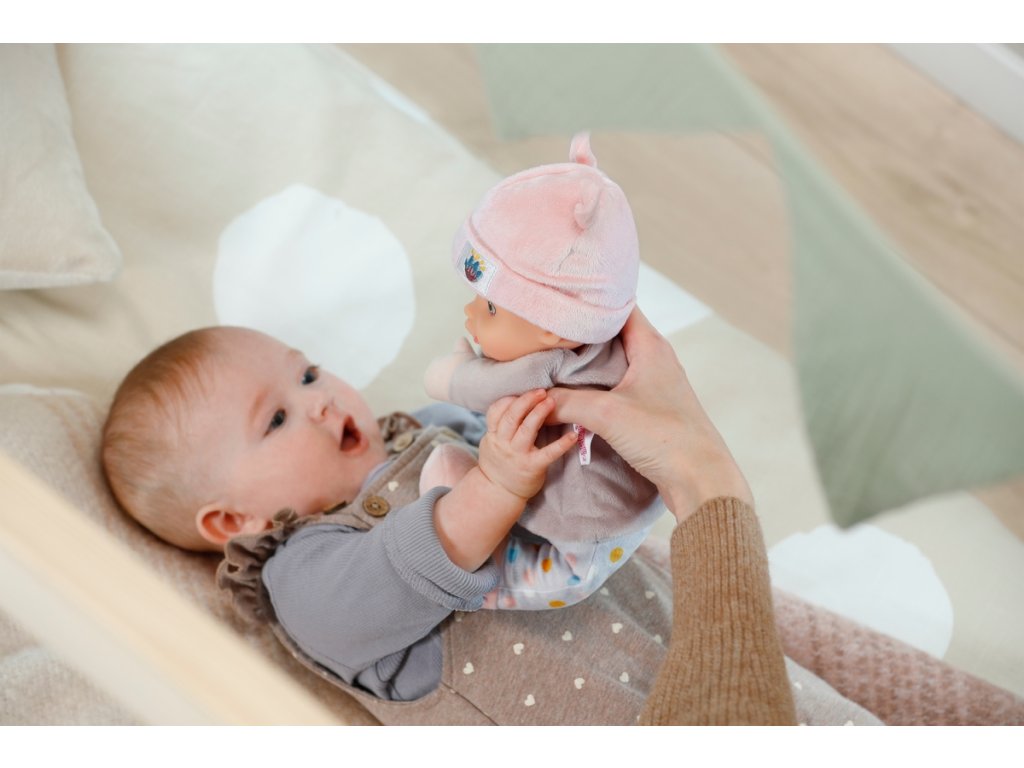 Hebká látková panenka s jemným chrastítkem a šustivým ouškem je ideální první kamarádkou pro mazlení, dotek i smyslové objevování. BABY born Sweetie ve fialové barvě má měkké tělíčko, výšivkový obličej, chrastítko a šustivý detail v oušku. Díky kompaktní velikosti 30 cm a bezpečnému zpracování je vhodná pro miminka od narození.Doplňkové parametry