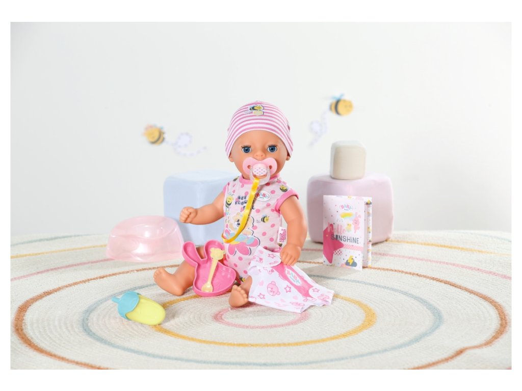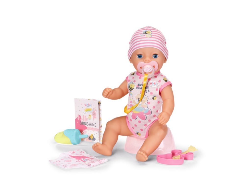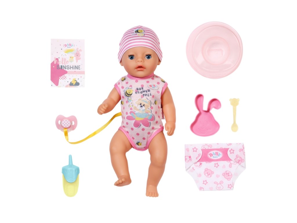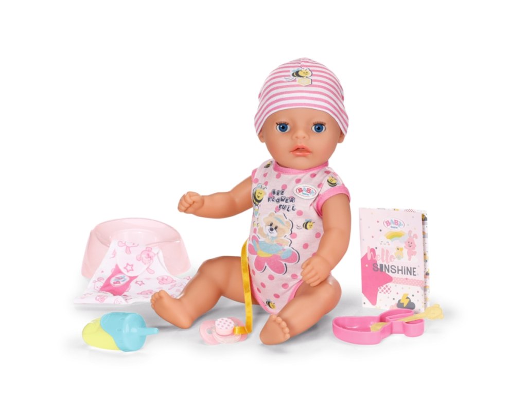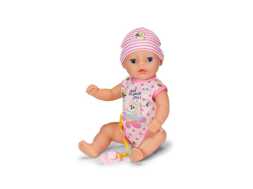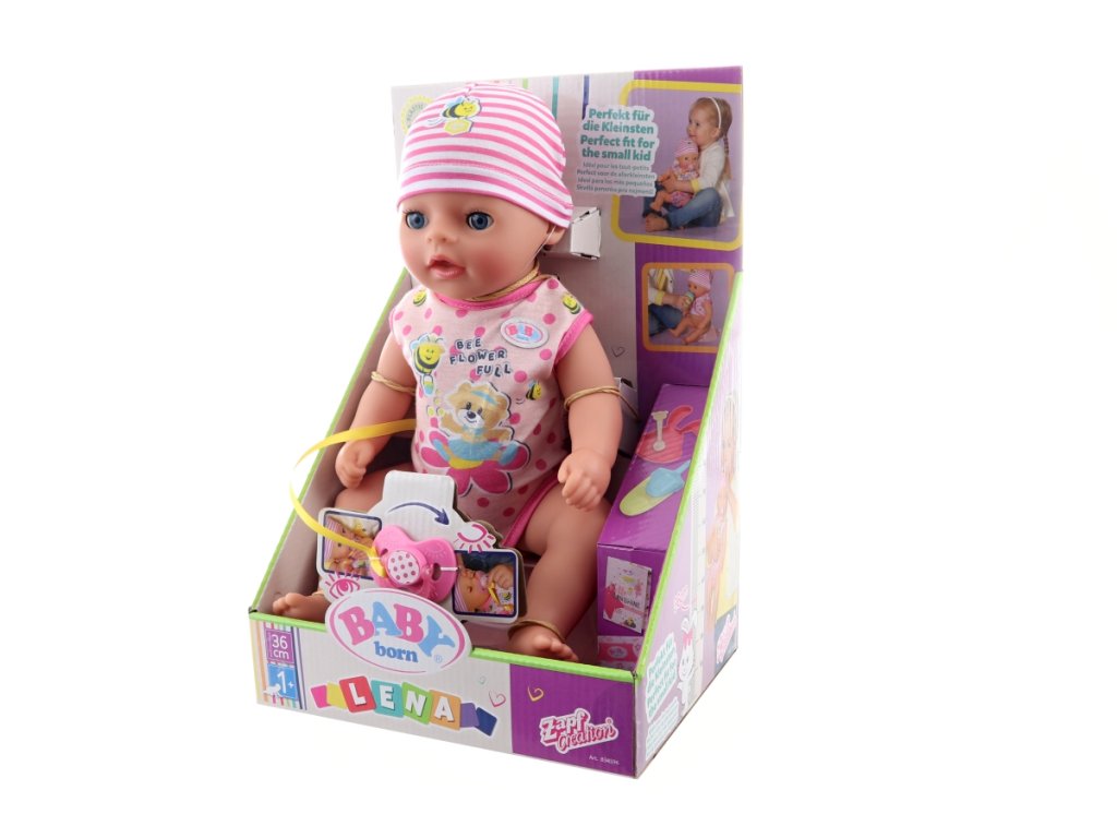 BABY born Lena, holčička, 36 cm v bodýčku a v čepičce. Součástí je nočník, látková plenka, lahvička, talířek se lžičkou, dudlík a rodný list. Má 7 funkcí pro spoustu zábavy.Umí pít, čůrat do plenky i do nočníku a koupat se.Když dostane dudlík, kouzelně otevře a zavře oči, ať sedí nebo leží.Díky své menší velikosti a nižší hmotnosti je vhodná i pro batolata jako jejich první panenka. Věk 1+Doplňkové parametry