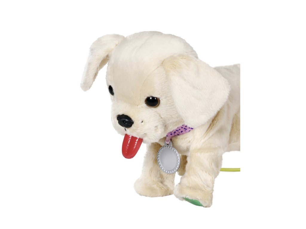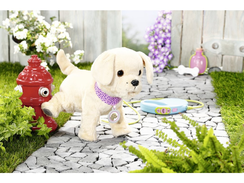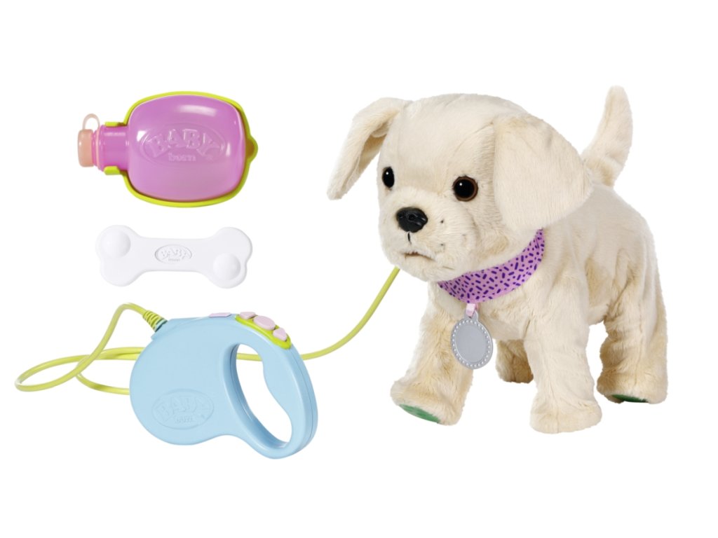 Kamarád BABY born, veselý pejsek, chodí na vodítku a vesele štěká. Když ho pohladíte po zádech, vrtí ocáskem a uslyšíte roztomilé psí zvuky. Umí pít vodu ze své mističky. Skloní hlavu, vyplázne jazyk a je slyšet, jak srká. Poté, co se napije, zvedne nohu a vyčůrá se. Skoro jako opravdový pejsek! Samozřejmě potřebuje i svou kostičku: pokud ji pejskovi přidržíte před čumáčkem, uslyšíte zvuky chroupání. Jeho box využijete nejen při cestování, ale také jako místo, kde může pejsek odpočívat. Pejsek je oblíbeným zvířecím kamarádem BABY born Emmy, se kterou hrají v animovaném seriálu BABY born. Nezapomeň se podívat! Věk 3+Doplňkové parametry