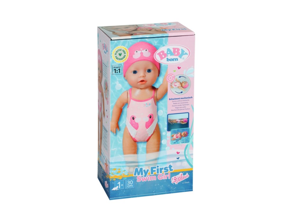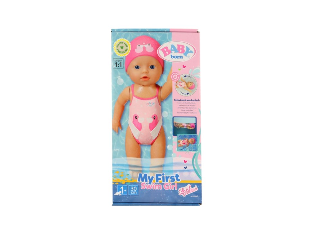 Malá holčička už se toho na hodině plavání tolik naučila. Nejraději má kraul a motýlka. Když plave kraul, střídá ve vodě jednu ruku za druhou, u motýlka rukama hýbe nastejno. A vše bez baterií! Stačí panence natáhnout ruce dozadu a je připravena na další kolo. Když jí ruce uvolníš, začne ve vodě plavat. Nohy a hlava „malého delfína“ jsou také pohyblivé, takže Plaváček může sedět na okraji bazénu a pozorovat svou maminku a tatínka. Plavací čepice a roztomilé plavky s motivem kačenky Berty a s legračními volánky jsou natištěny přímo na těle panenky jako reliéf.Plave kraula a motýlka, není třeba baterií.Tělo panenky je vyrobeno z vodotěsného materiálu. Velikost panenky 30 cm.Věk 3+Doplňkové parametry