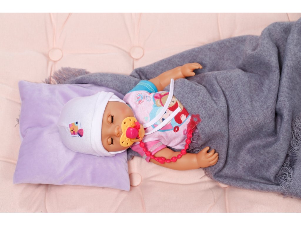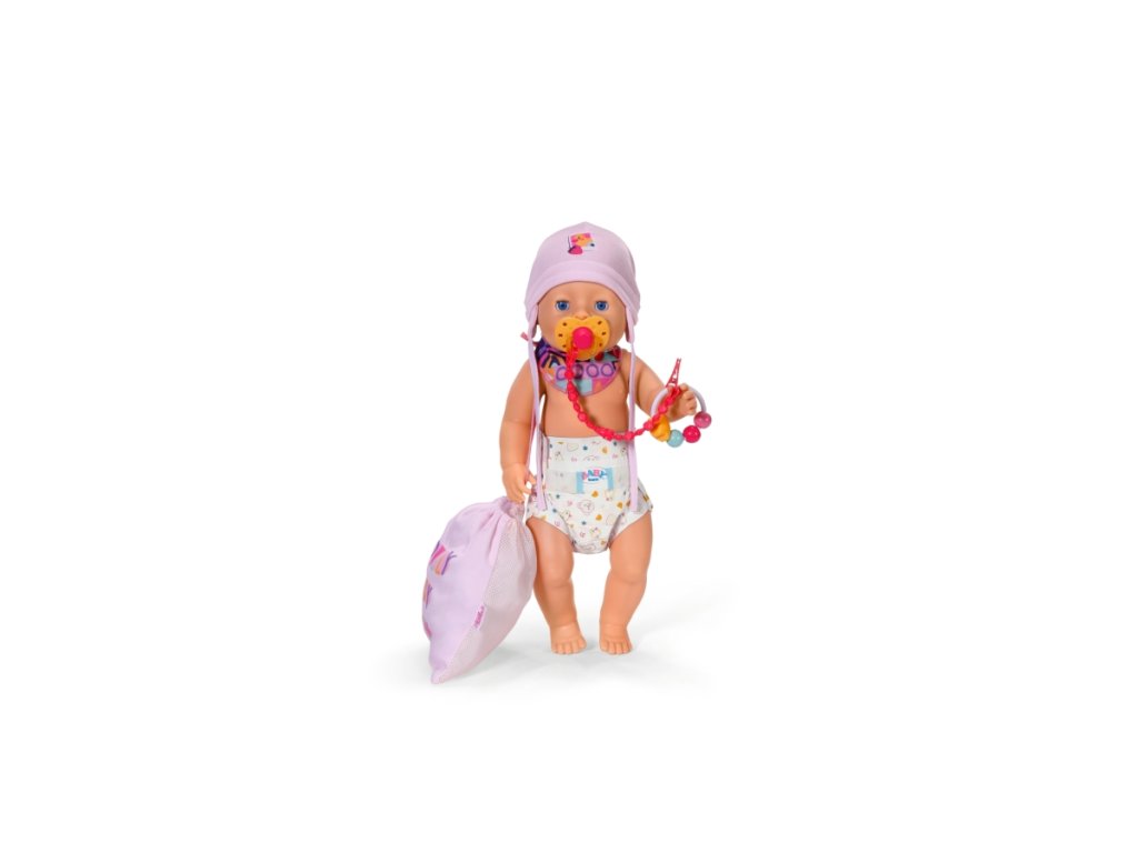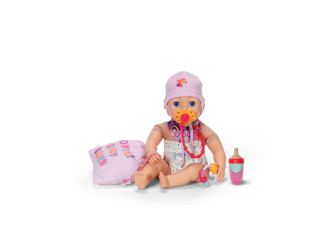 Sada doplňků pro panenky – s lahvičkou, plenou a hracími doplňky. Pečlivě sestavená sada s čepičkou, lahvičkou, plenou, bryndákem a hracími kroužky je ideální pro začátek hraní s panenkou. Vhodná pro panenky vysoké 43 cm. Věk 3+Doplňkové parametry