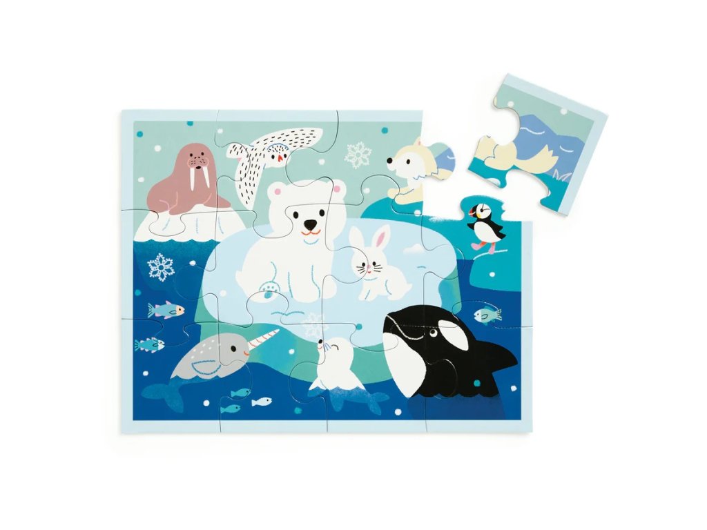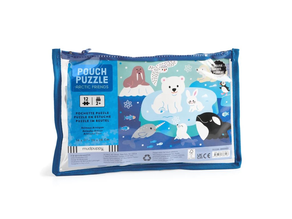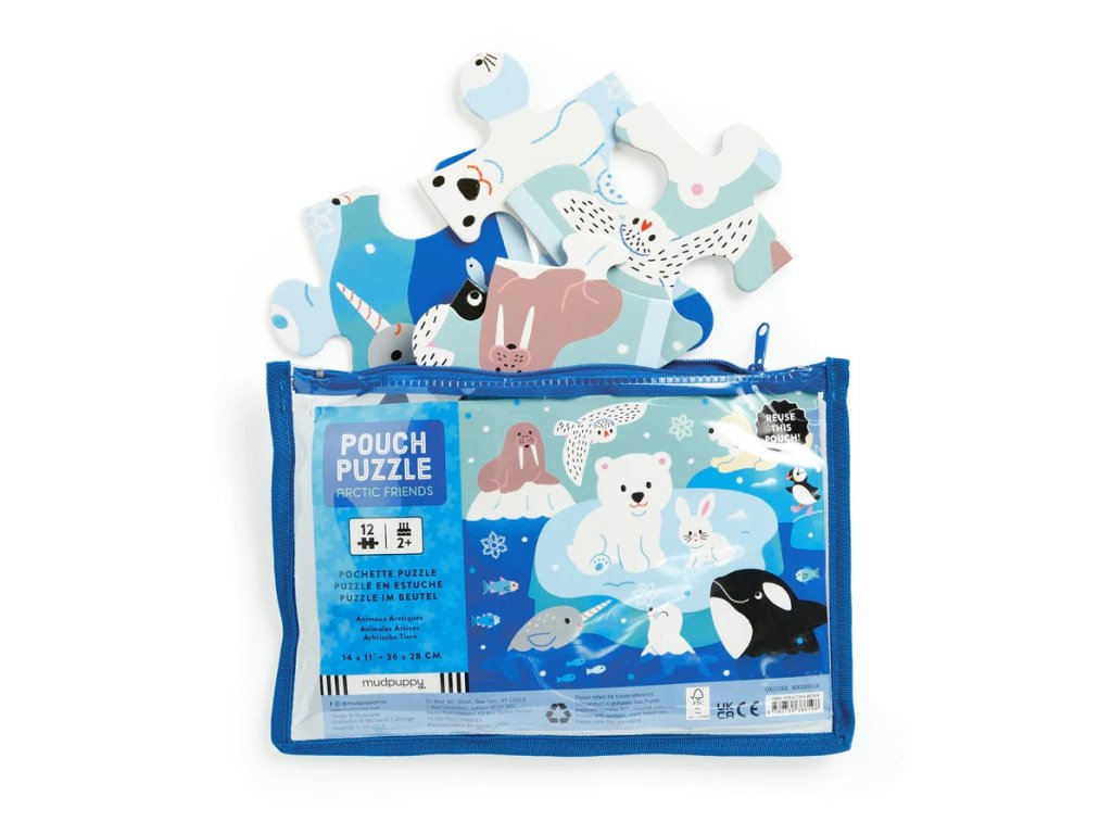 Prozkoumejte svět Mudpuppy s různými druhy arktických zvířat. Tato skládačka obsahuje 12 extra silných dílků, které jsou ideální pro malé ručičky, a je zabalena v bezpečném, opakovaně použitelném sáčku se zipem pro snadné skladování i cestování.