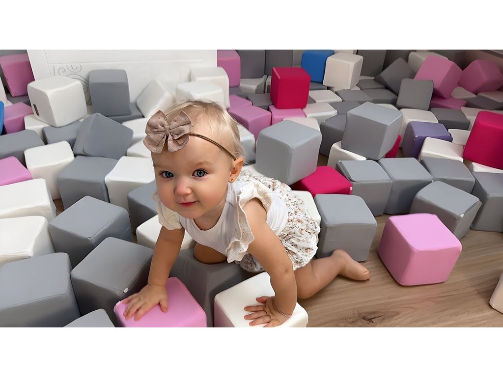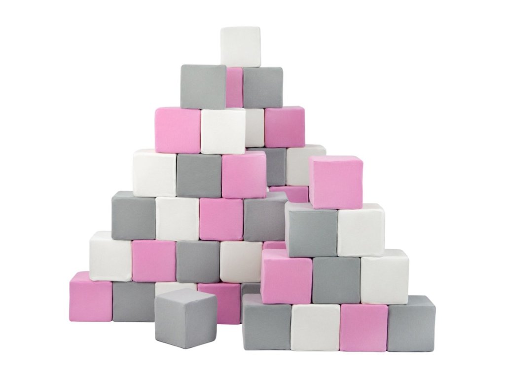 Pěnové kostky-sada 45 velkých pěnových kostek Pyramida pink white grey