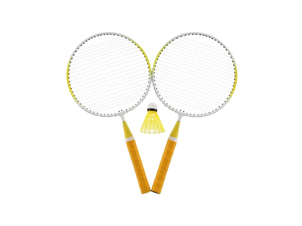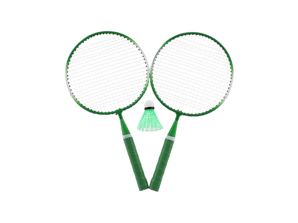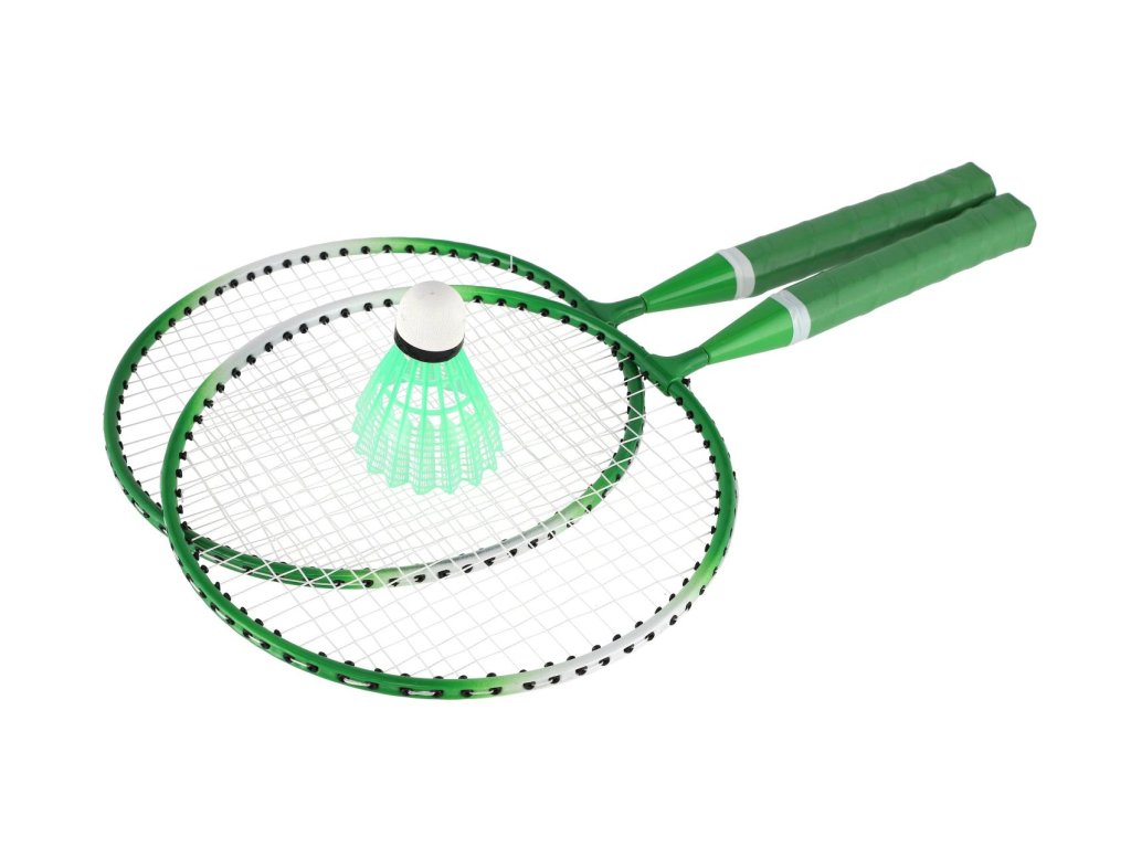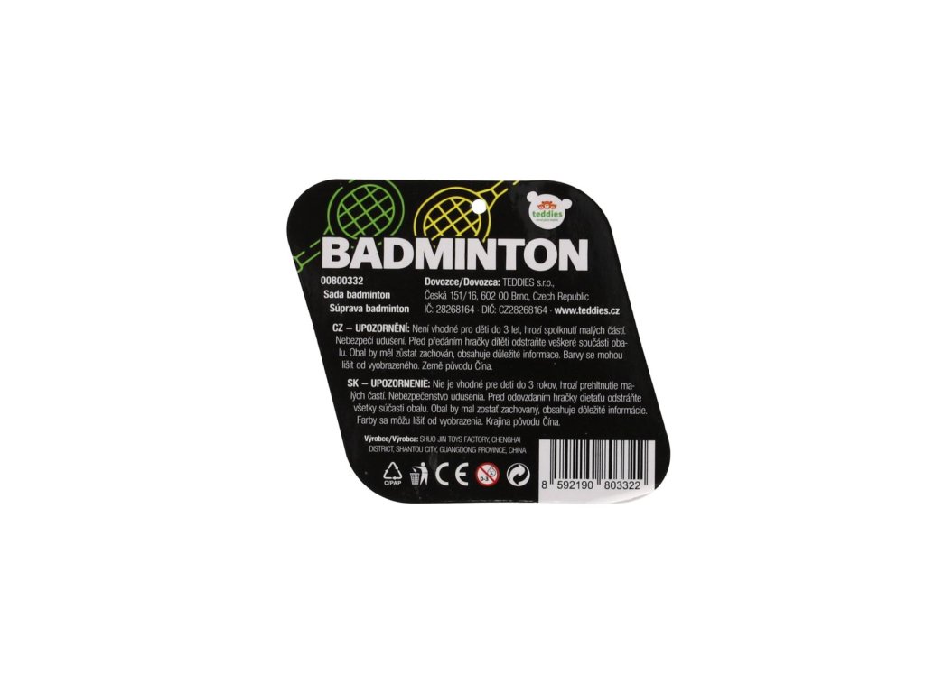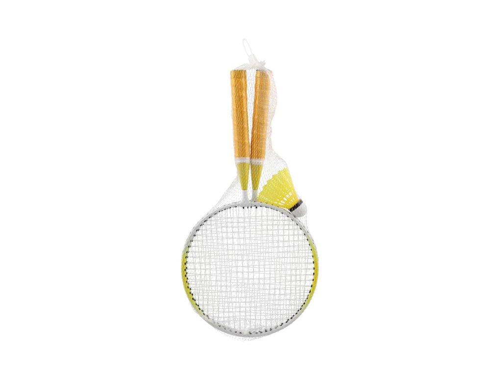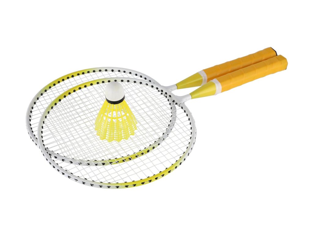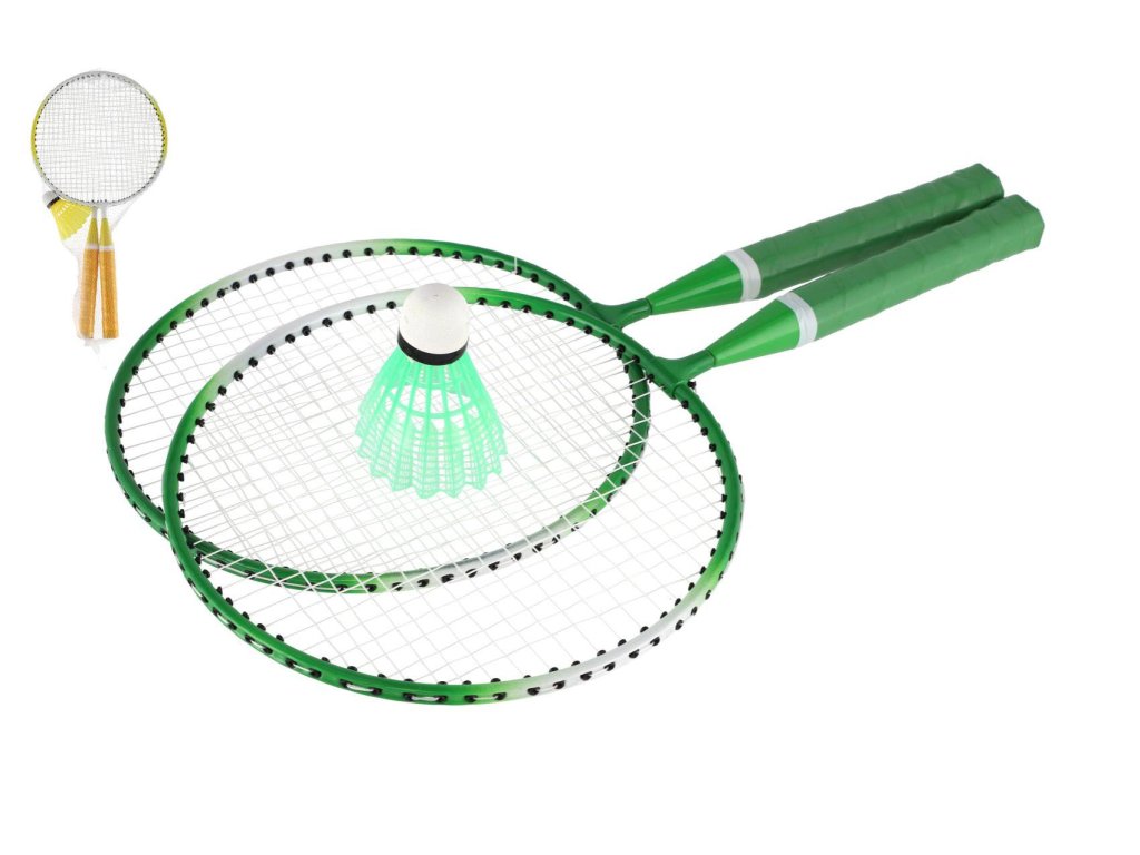 Badminton sada dětská kov/plast 2 pálky + 1 košíček 2 barvy v síťce 23x45x6cm