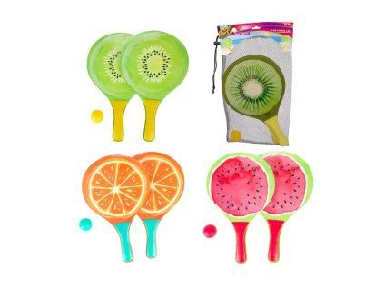 Sada na plážový tenis ovoce dřevěné 38cm 2 pálky + 1 míček 3 druhy v látkovém sáčku