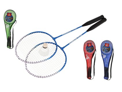 Sada badminton pálky 2ks + míček 1ks 64cm kov/plast 4 barvy v pouzdře (1 ks)