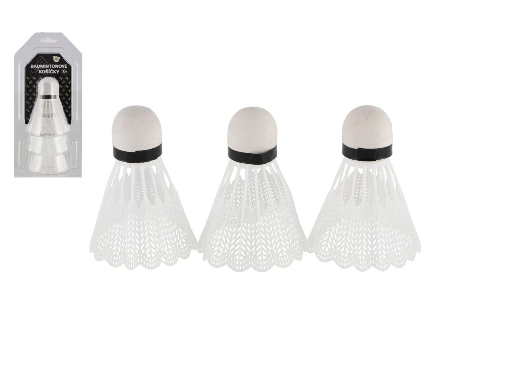 Míčky/Košíčky na badminton bílé 3ks plast v blistru 11x22cm