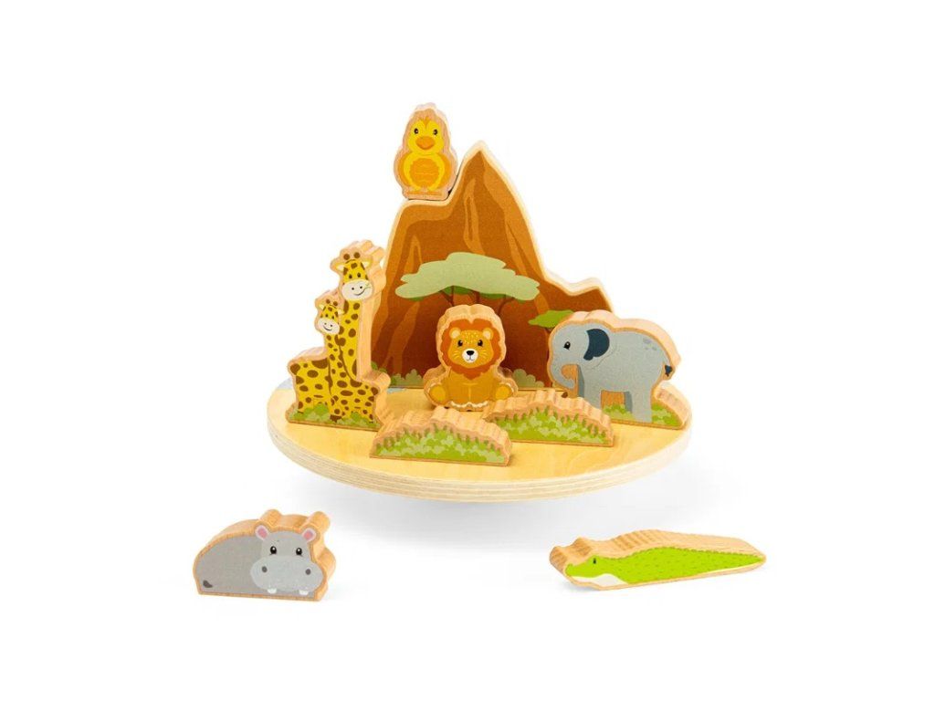 Pohupujte se a balancujte s divokými zvířaty na balanční desce Džungle. Tato dřevěná balanční hračka obsahuje roztomilá zvířátka, která děti skládají na základnu a užívají si s nimi spoustu zábavy. Děti mohou se žirafou a dalšími kamarády vymýšlet nekonečné příběhy a posilovat svou kreativitu při aranžování masivních dřevěných figurek. Sledujte, jak se vaše ratolest snaží najít rovnováhu pro lva, krokodýla, slona, hrocha a žirafu na jemně se houpajícím podstavci. Tato hračka, vyrobená z certifikovaného dřeva FSC®, je ideální pro rozvoj koordinace ruka-oko prostřednictvím hry. Každé zakymácení podporuje učení a rozvoj dítěte, což z této sady dělá vynikající nástroj pro trénink jemné motoriky a logického myšlení. Elegantní skandinávský design navíc zaručuje, že hračka bude krásným doplňkem v každém moderním dětském pokojíčku. Sada je testována podle nejnovějších bezpečnostních norem a dodává se ve 100% recyklovatelném obalu bez obsahu plastů.