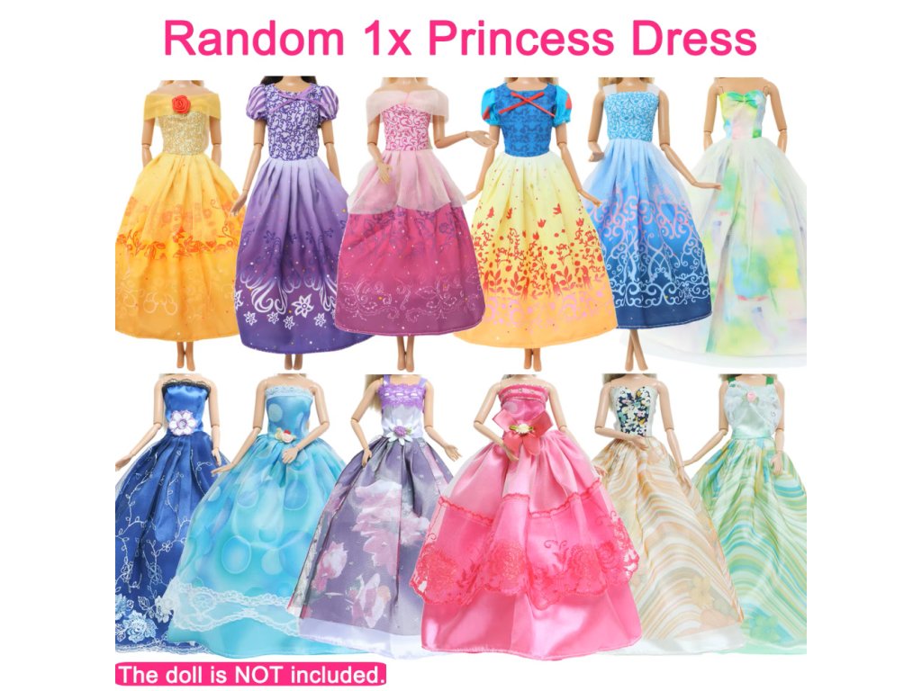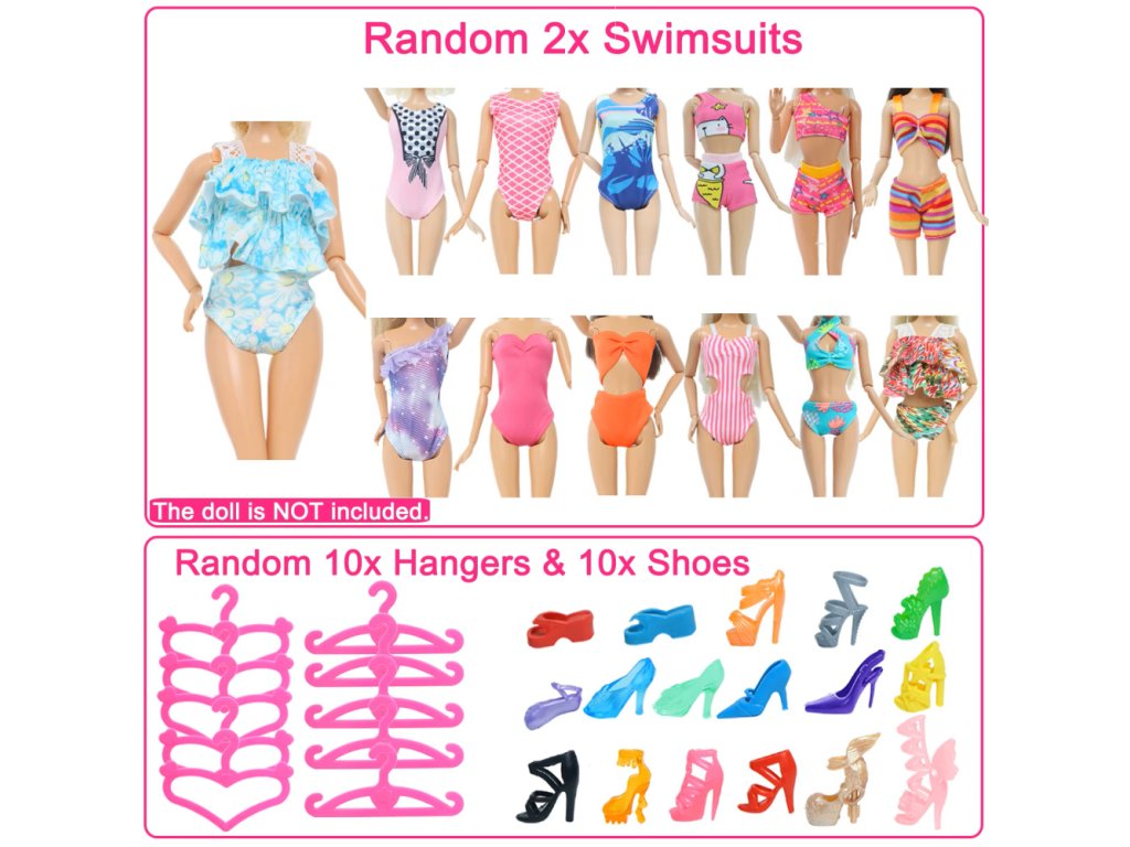 Balení: 27 ks (1x princeznovské šaty, 2x denní šaty, 2x top a kalhoty, 2x plavky, 10x boty, 10x ramínko)