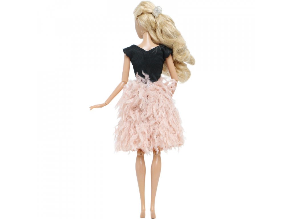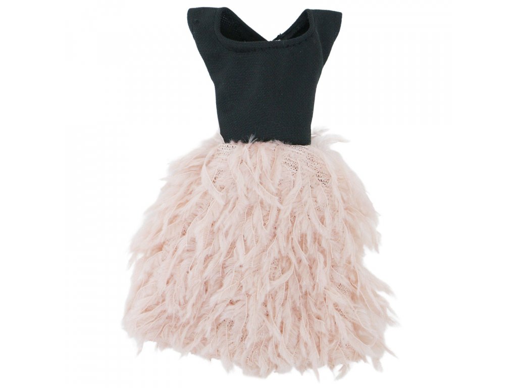 Černo-růžové šaty se sukní z peříček pro panenku Barbie