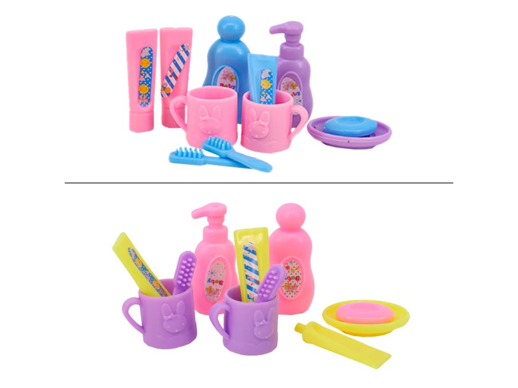Balení: 5 ks stylových šatů + 2 počítače + 2 domácí mazlíčci + 2 páry vysokých podpatků + 2 zubní kartáčky + 2 kalíšky na zuby + 1 šampon + 1 sprchový gel + 3 zubní pasty + 1 mýdlo + krabička + 2 čelenky + 1 taška + 3 lahvičky parfému + 1 klobouk + 1 štětec - dodáváno dle skladových zásob