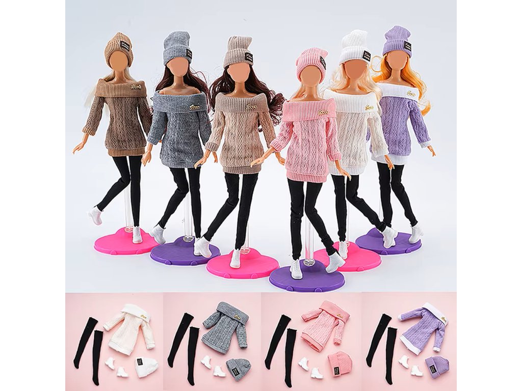 Set oblečení pro panenku Barbie (svetr, nadkolenky, botky a čepice)