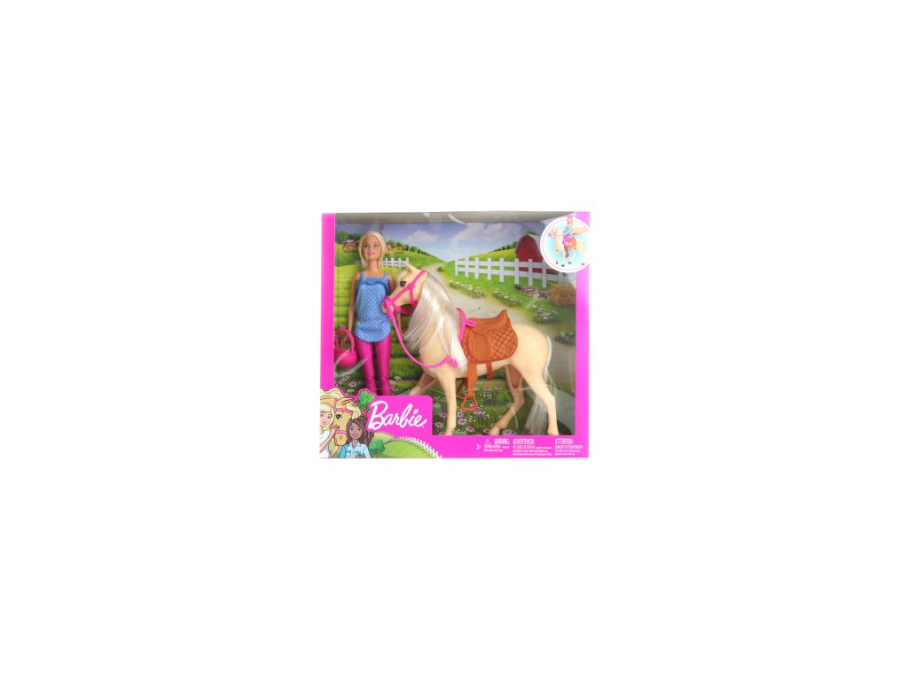 Panenka Barbie® a její koník jsou připraveni na dlouhý výlet do přírody. Připoj se k panence Barbie® a užijte si krásný slunečný den, protože ten nejkrásnější pohled je z koňského hřbetu. Barbie® se na vyjížďku oblékla do pohodlného oblečku skládajícího se z módního topu, růžových kalhot a vysokých jezdeckých bot. Před vyjížďkou nezapomeň panence nasadit jezdeckou přilbu. Bezpečnost je důležitá! Díky ohebným kolenům se panenka pohodlně usadí do sedla a vloží svá chodidla do třmenů. Panenčin koník má překrásnou světle hnědou barvu, hebkou hřívu a ocas a odnímatelnou uzdu s růžovými otěžemi. Věk 3+Doplňkové parametry
