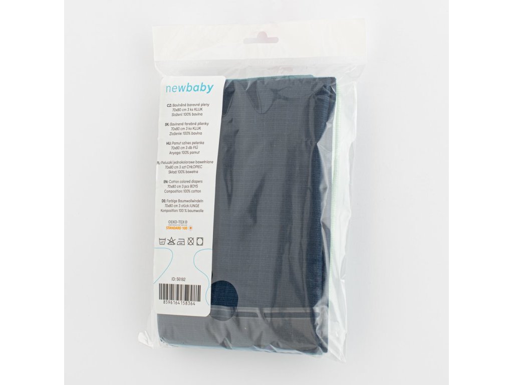 Bavlněné dětské pleny české značky New Baby ve zvýhodněné sadě, jsou nepostradatelnou součástí výbavičky pro miminko. Balení obsahuje 3 ks. Vhodně zvolené barvy pro chlapečky. Plenky jsou vyrobeny ze 100% bavlny. Jsou hygienické, nezpůsobují alergickou reakci a napomáhají zdravému vývoji kyčelních kloubů u novorozenců. Můžete je využívat nejen pro přebalování ale i pod hlavičku miminka v postýlce či kočárku. Vysoká kvalita zpracování.Charakteristika: