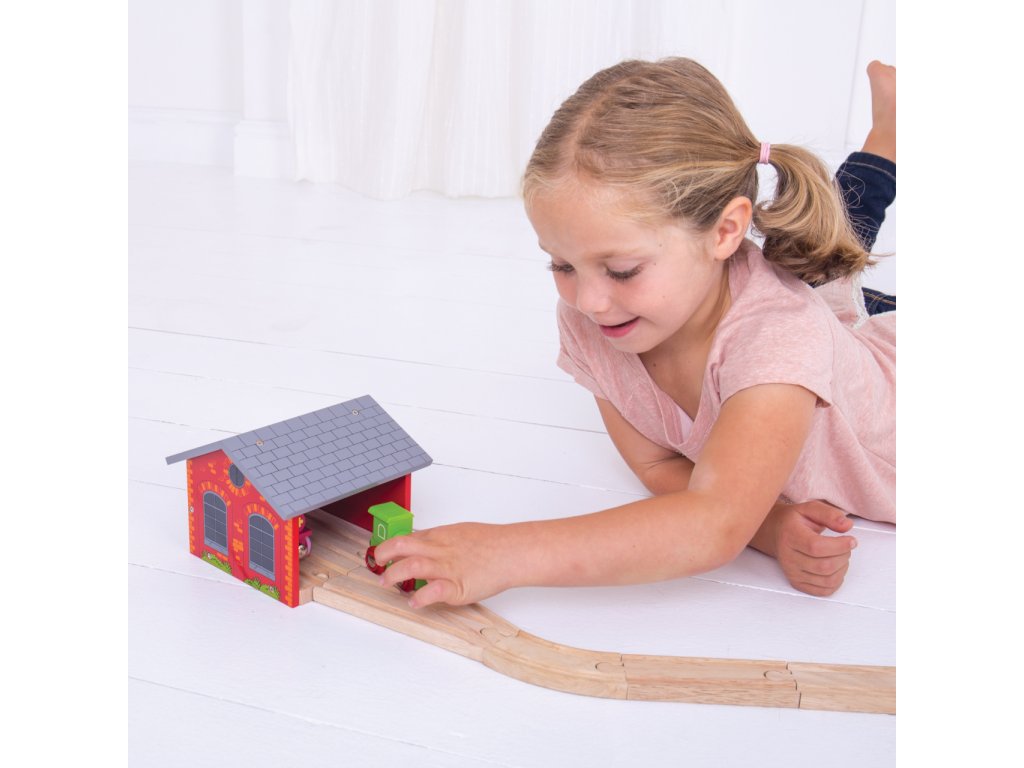 Bigjigs Rail Cihlové depo pro dva vláčky