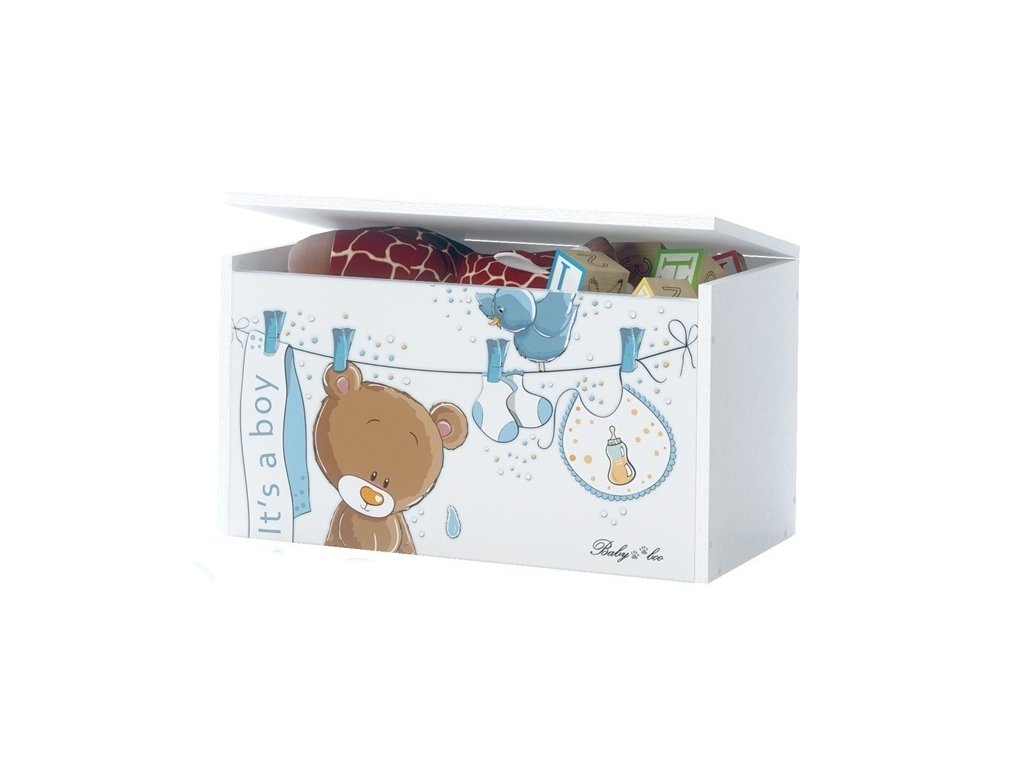 Box na hračky, truhla Medvídek Ouško sv. modré s bílou