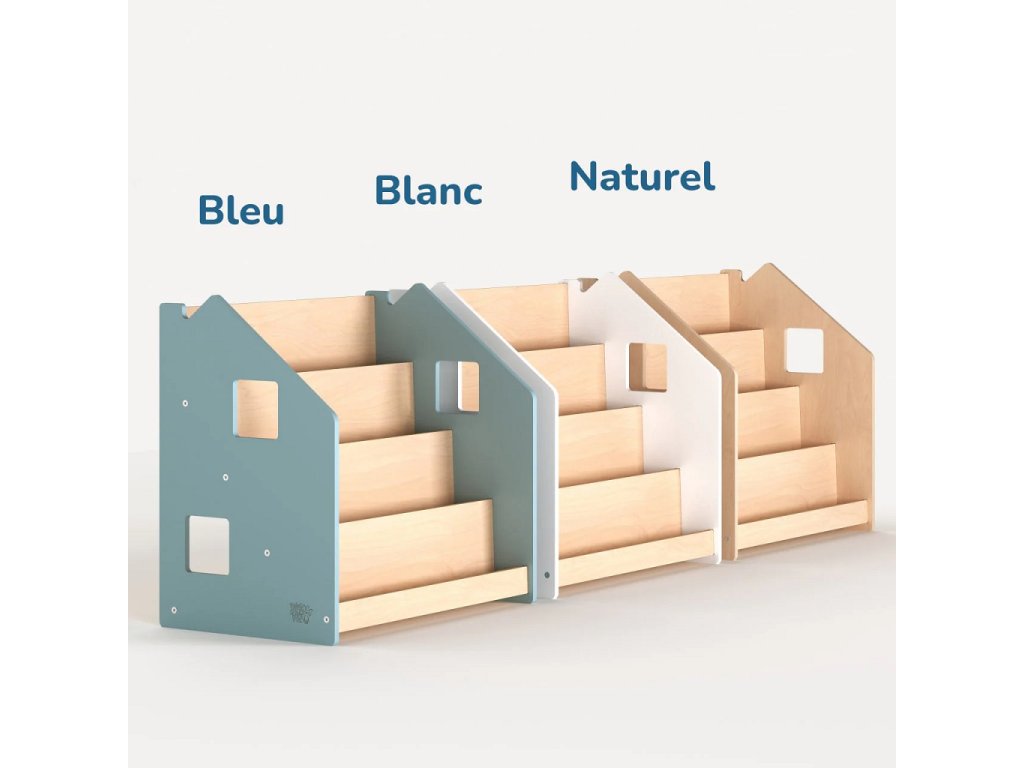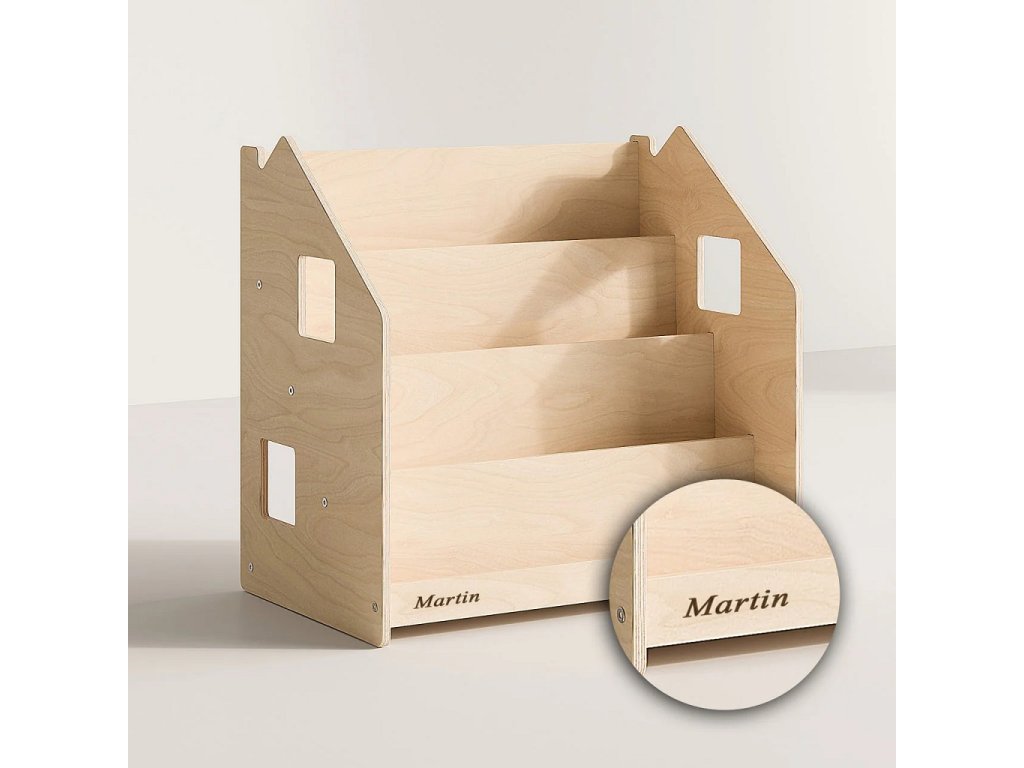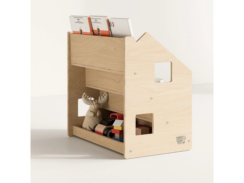 Tento stojan na knihy je navržen tak, aby podporoval dětskou samostatnost a rozvíjel jejich zájem o čtení. Díky tomu, že jsou knížky vidět obálkami dopředu, děti si snadno vyberou tu, která je zaujme a po přečtení ji zase jednoduše vrátí na místo. Police nabízí čtyři prostorné regály a zadní úložný prostor vhodný pro knihy či hračky. Robustní a bezpečná konstrukce s pečlivě zaoblenými hranami je ošetřena lakem na vodní bázi. Díky jednoduchému, čistému designu krásně zapadne do každého interiéru.