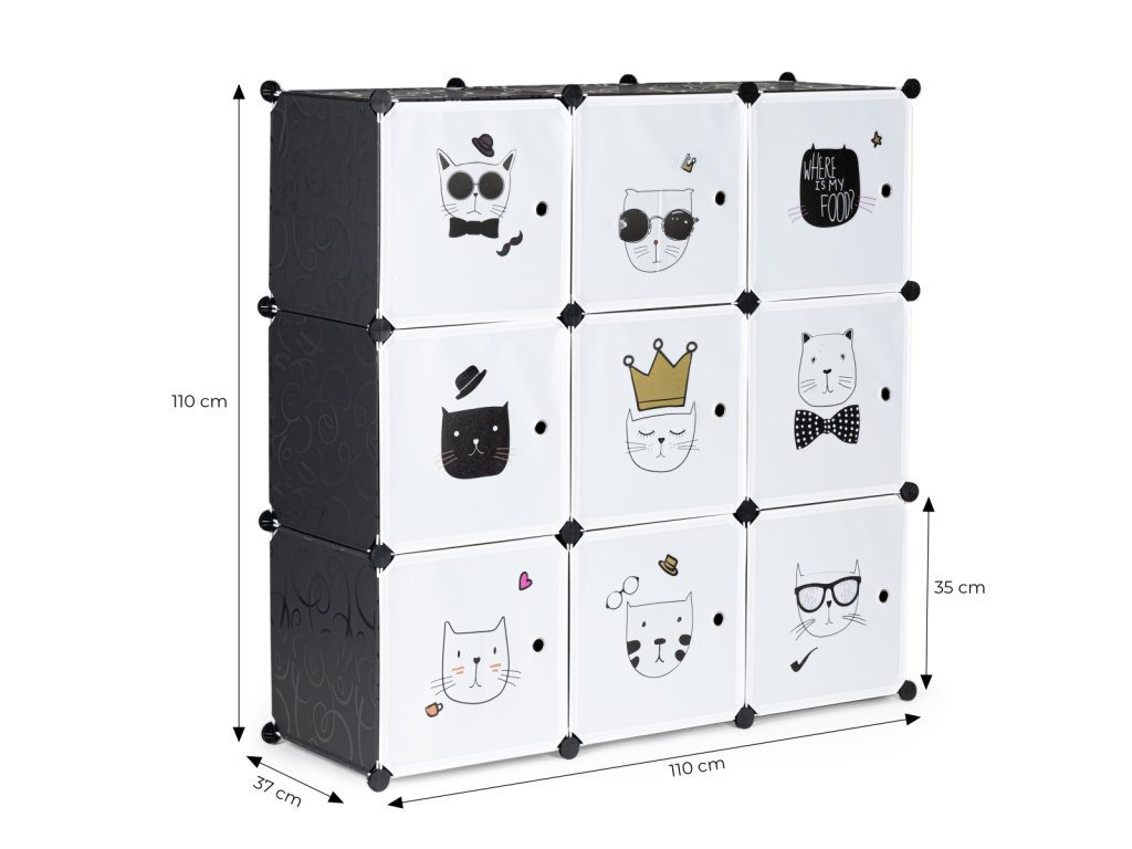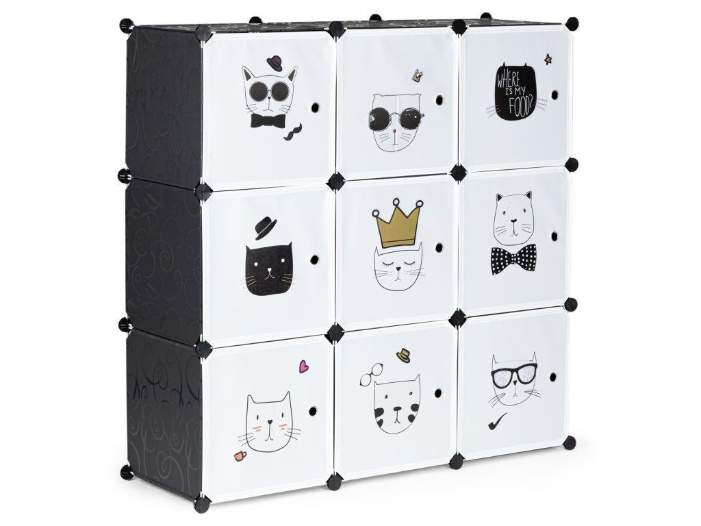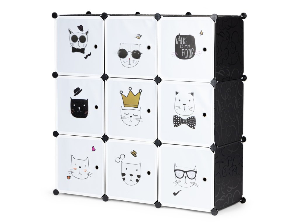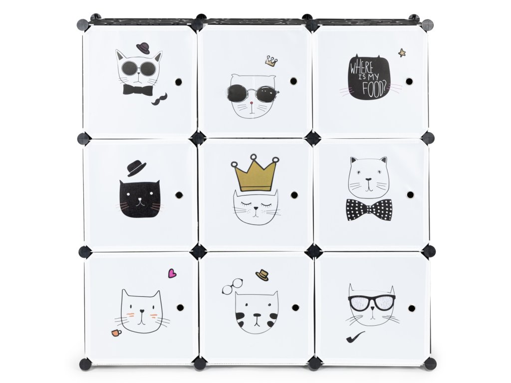 Dětský modulární regál, 9 polic, kočky