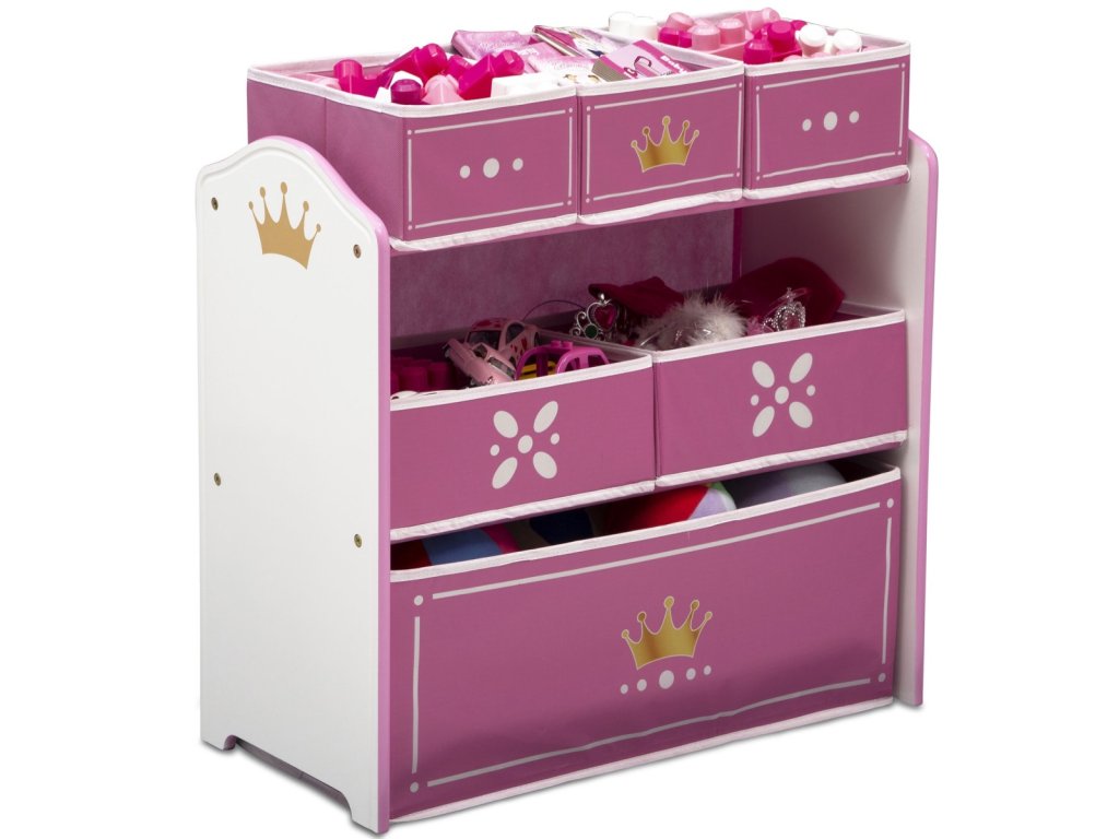 Dětský organizér na hračky v růžovo bílé kombinaci s motivem královských korunek. Krásný doplněk do dětského pokojíčku. Nudné uklízení hraček se může stát zábavou. Organizér je ideální k uskladnění hraček, obsahuje 6 plátěných boxů, řešených tak, aby si děti mohly ukládat hračky samy. Vhodný pro děti od 3 let. Vlastnosti velmi silná a stabilní konstrukce snadno sestavitelný zaoblené rohy (větší bezpečnost dětí) Materiál kvalitní MDF deska plátěné boxy - 6ks Rozměry 82 x 60 x 30 cmUpozornění !