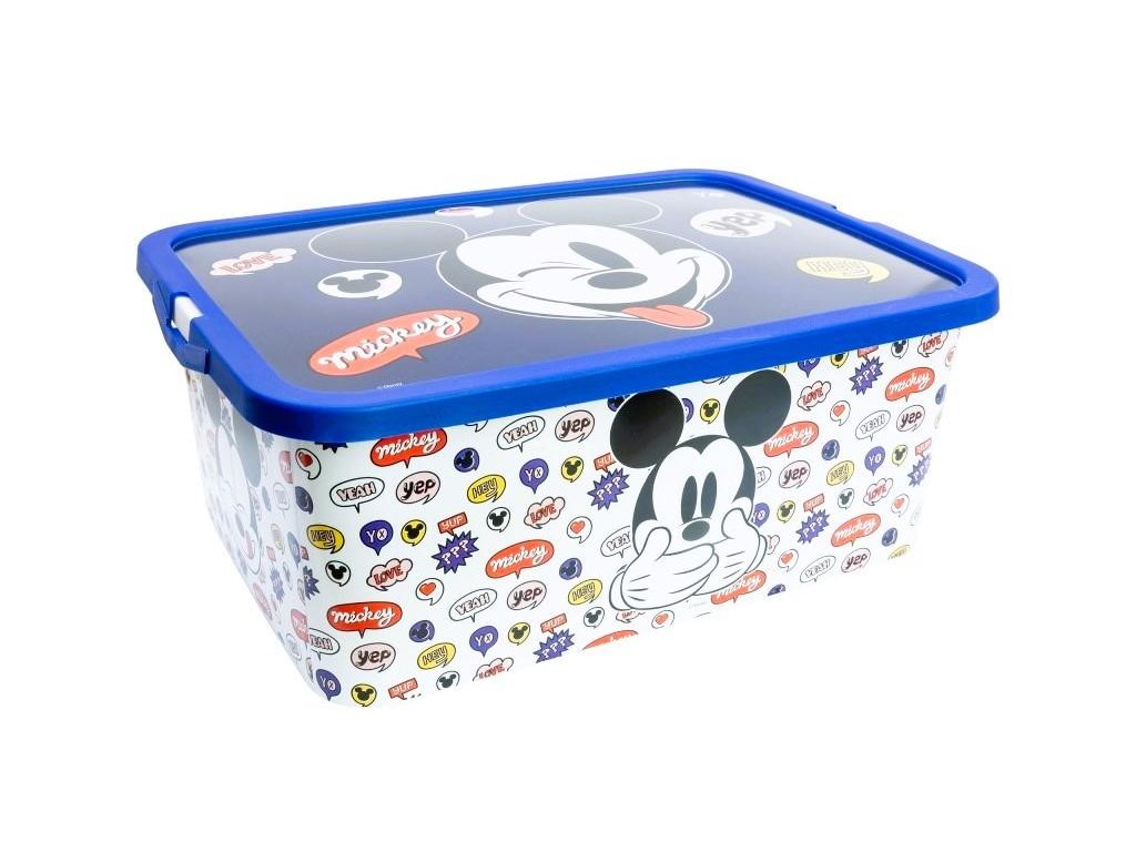 Úložný box s víkem na klip s motivem Disney Mickey. Bez ostrých hran, ideální do dětského pokoje. Objem: 13 l. Rozměry: 40 x 29 x 15 cm. Materiál: plast, zdravotně nezávadný. Pro děti od 3 let. Výrobce: Stor. Stor, S.L.P. General Martínez Campos 5328010 Madrid, Spain info@storline.comDoplňkové parametry