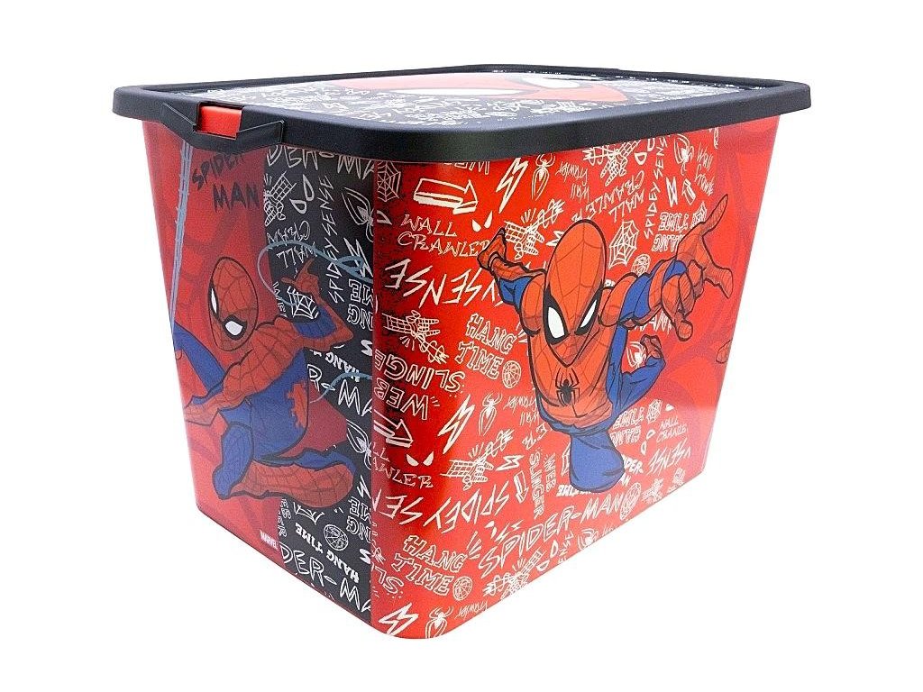 Úložný box s víkem na klip s motivem Spiderman. Bez ostrých hran, ideální do dětského pokoje. Kapacita: 23 l. Rozměry: 38,7 x 28 x 27 cm. Materiál: plast, zdravotně nezávadný. Pro děti od 3 let. Výrobce: Stor. Stor, S.L.P. General Martínez Campos 5328010 Madrid, Spain info@storline.comDoplňkové parametry
