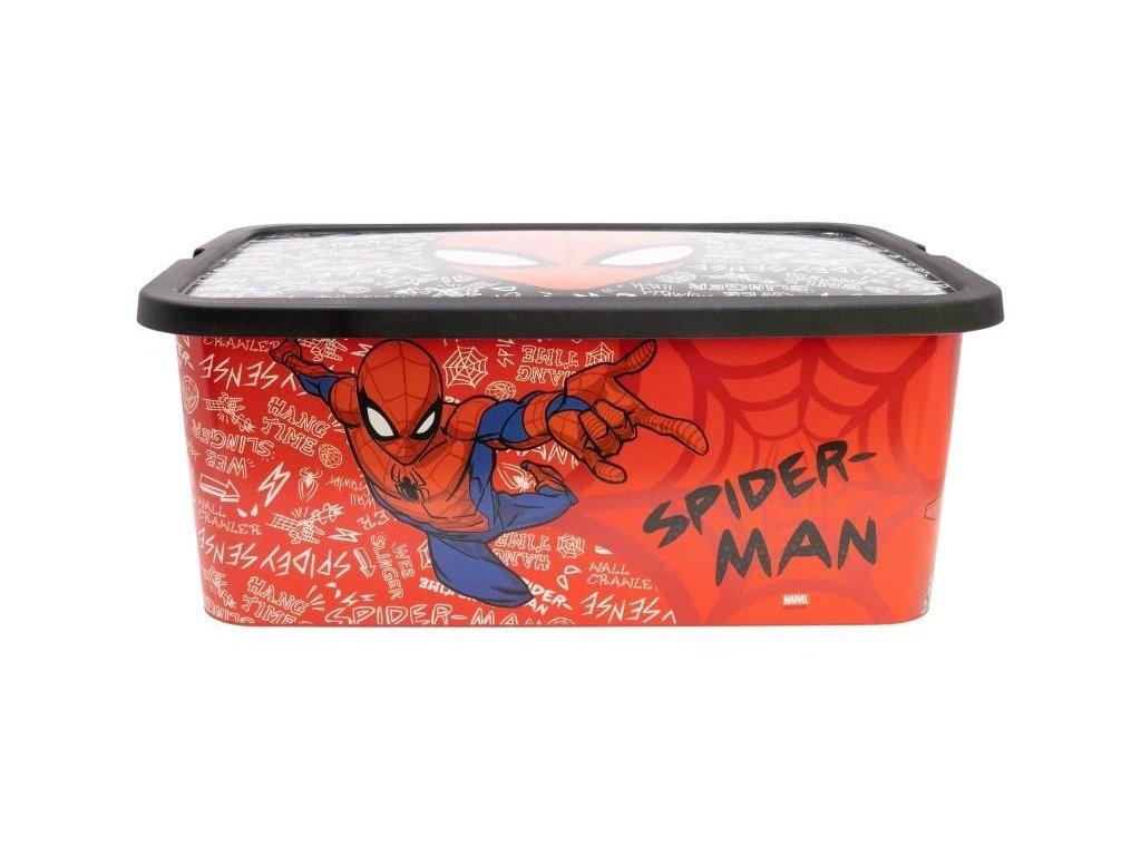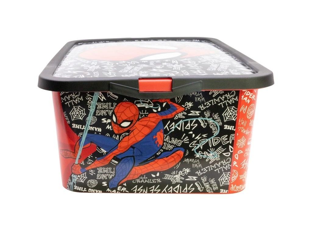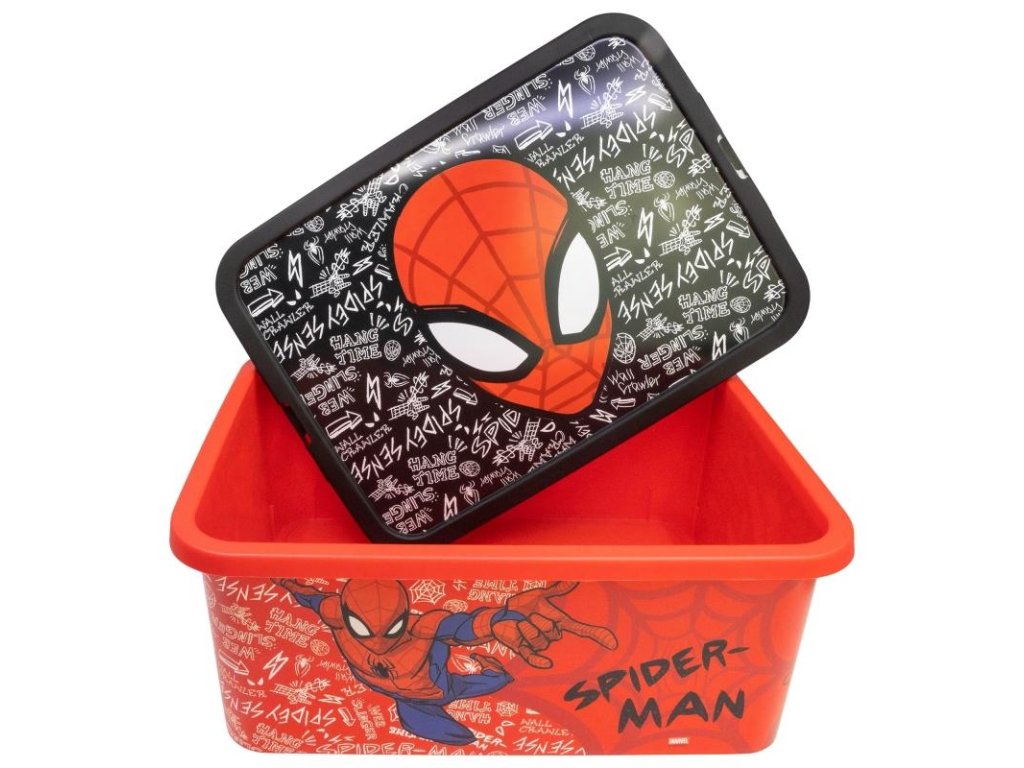 Úložný box s víkem na klip s motivem Spiderman. Bez ostrých hran, ideální do dětského pokoje. Objem: 13 l. Rozměry: 40 x 29 x 15 cm. Materiál: plast, zdravotně nezávadný. Pro děti od 3 let. Výrobce: Stor. Stor, S.L.P. General Martínez Campos 5328010 Madrid, Spain info@storline.comDoplňkové parametry