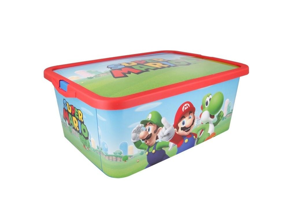 Úložný box s víkem na klip s motivem Super Mario. Bez ostrých hran, ideální do dětského pokoje. Kapacita: 13 l. Rozměry: 40 x 29 x 15 cm. Materiál: plast, zdravotně nezávadný. Pro děti od 3 let. Výrobce: Stor. Stor, S.L.P. General Martínez Campos 5328010 Madrid, Spain info@storline.comDoplňkové parametry