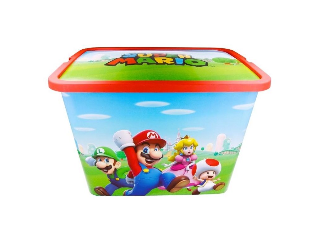 Úložný box s víkem na klip s motivem Super Mario. Bez ostrých hran, ideální do dětského pokoje. Objem: 23 l. Rozměry: 38,7 x 28 x 27 cm. Materiál: plast, zdravotně nezávadný. Pro děti od 3 let. Výrobce: Stor. Stor, S.L.P. General Martínez Campos 5328010 Madrid, Spain info@storline.comDoplňkové parametry