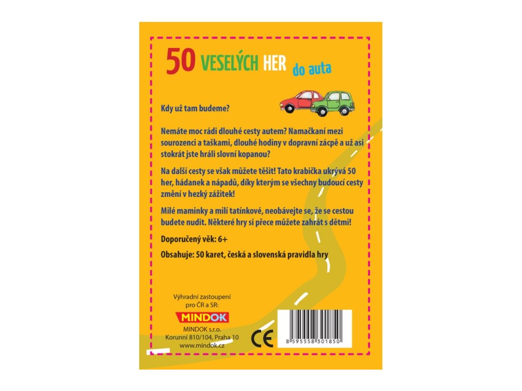 Kdy už tam budeme? Nemáte moc rádi dlouhé cesty autem? Namačkaní mezi sourozenci a taškami, dlouhé hodiny v dopravní zácpě a už asi stokrát jste hráli slovní kopanou? Na další cesty se však můžete těšit! Tato krabička ukrývá 50 her, hádanek a nápadů, díky kterým se všechny budoucí cesty změní v hezký v zážitek! Balení obsahuje 50 karet,pravidla česká a slovenská.Věk 6+Doplňkové parametry