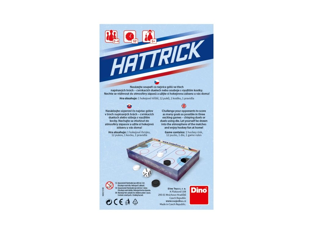 Obsah balení: hokejové hřiště, 12 puků ve dvou barvách, hrací kostka, pravidla.