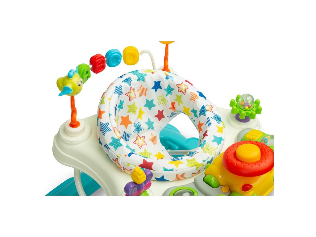 A samozřejmě nechybí funkčnost – otočné sedátko poskytuje snadný přístup k různorodým interaktivním hračkám.