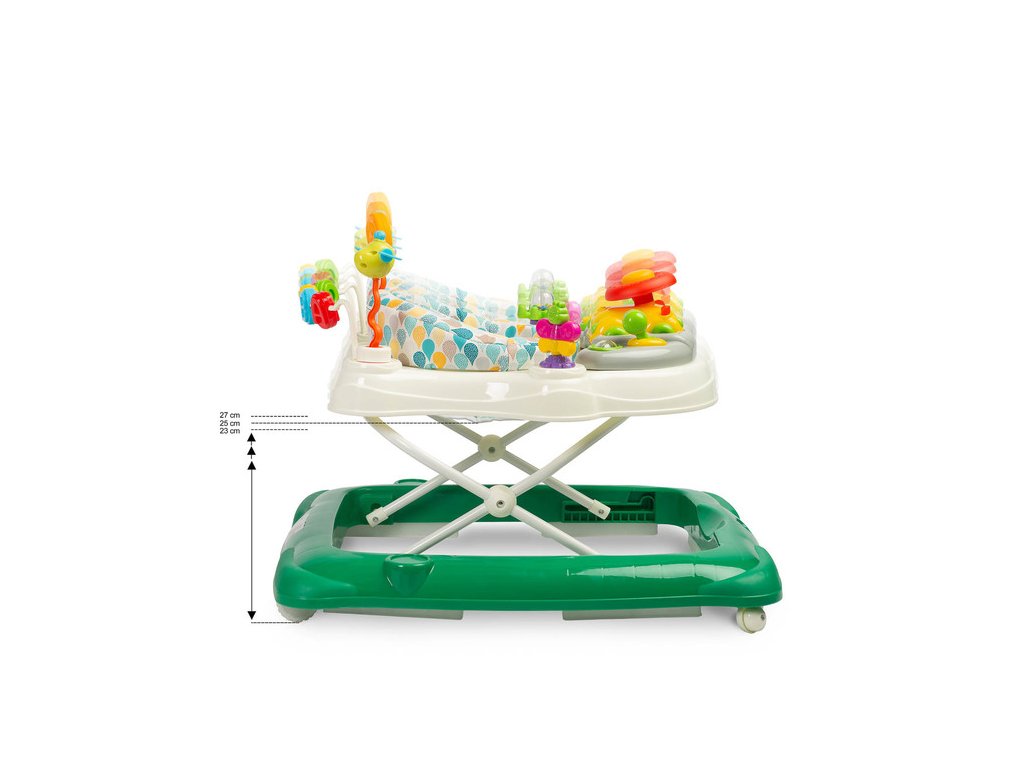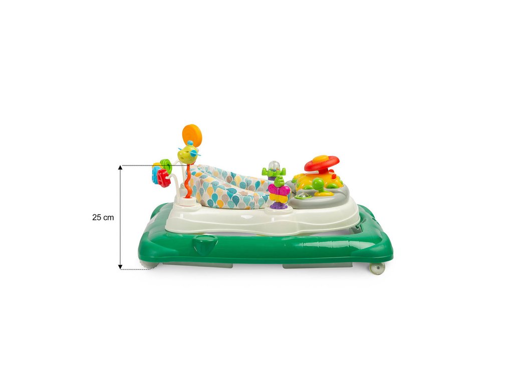 Děti si navíc zamilují edukativní panel, který je plný světel, zvuků a dalších atraktivních prvků, jež rozvíjejí jejich smysly a zabaví je na dlouhé chvíle.