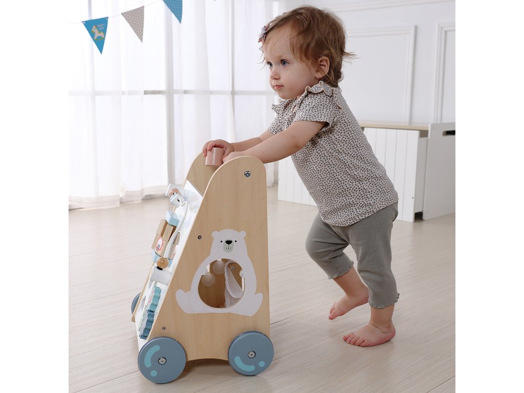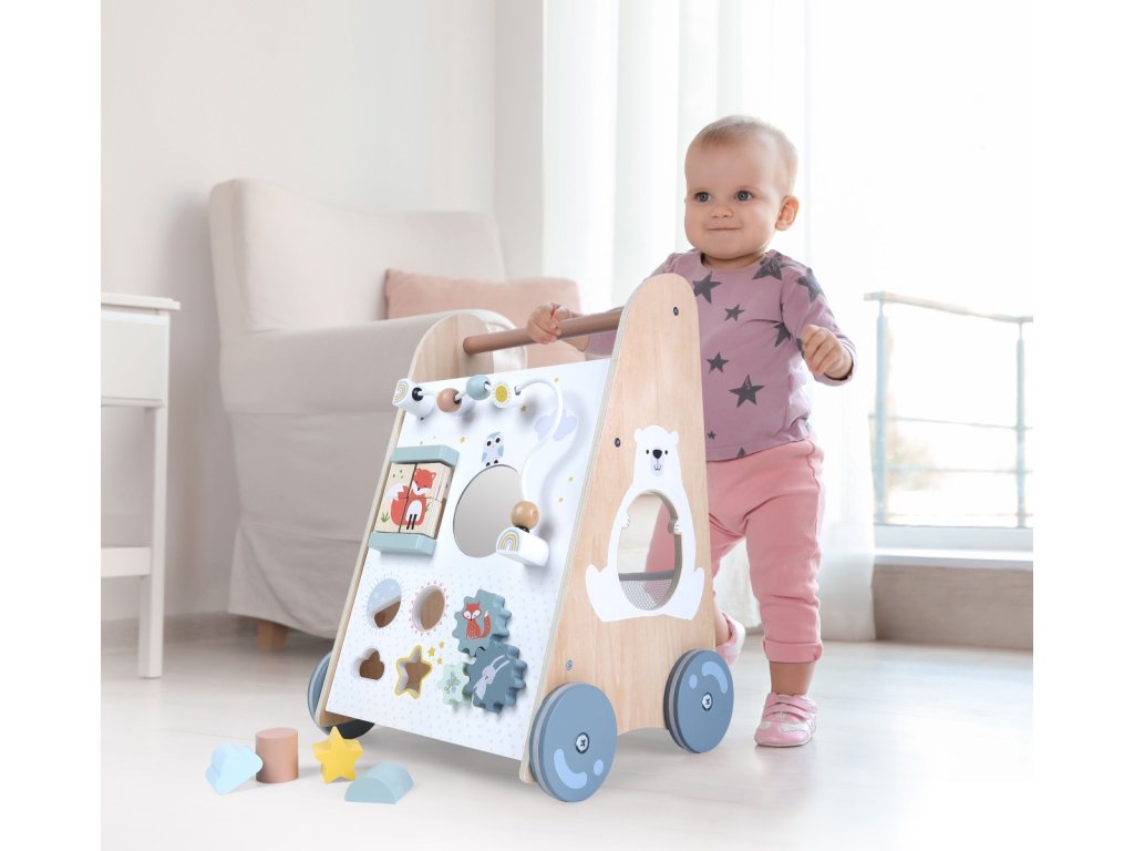 Dřevěné chodítko spojuje zábavu, pohyb a učení v jednom. Pomáhá dětem získat jistotu při chůzi, trénuje motoriku a zároveň nabízí pestré hry, které zabaví na dlouhé hodiny. Skvělý dárek pro každé malé dítě, které objevuje svět vlastním tempem.