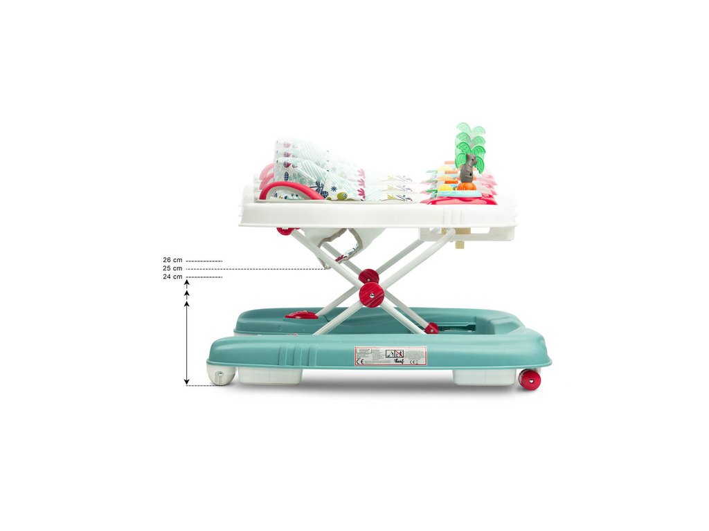 Multimediální plocha a sportovní vzhled vás povzbudí k prvním krůčkům a aktivnímu hraní. Díky madlům umístěným v zadní části chodítka po vyjmutí sedátka poslouží hračka dítěti jako pohodlné odstrkovadlo.