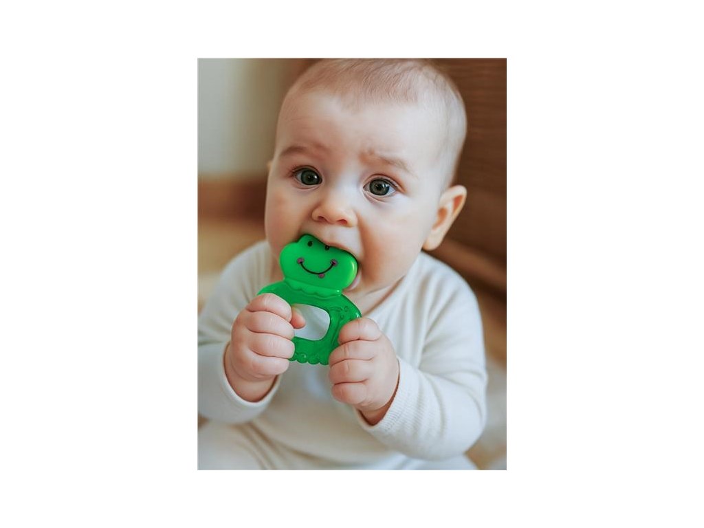 Chladící kousátko Baby Mix ve tvaru žabky. Kousátko díky svému tvaru a materiálu pomáhá tišit bolest a jemně masírovat dásně miminek v období růstu prvních zoubků. Je vyrobeno z kvalitního, měkkého a odolného materiálu, který lze snadno mýt. Speciální tvar umožňuje miminku snadné držení. Kousátko je odolné proti propíchnutí a prasknutí. Určeno pro děti od prvních dnů života. Neobsahuje BPA.