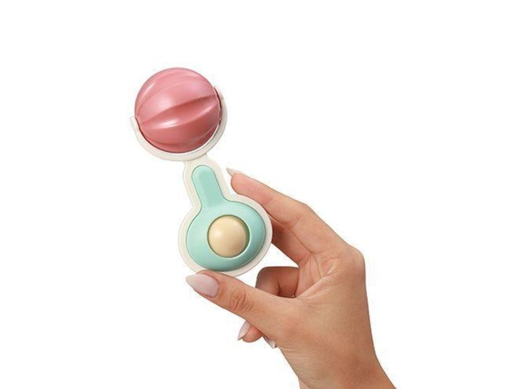 Ergonomický design: Kousátko-chrastítko je navrženo tak, aby dokonale padlo do malých dětských ručiček, což usnadňuje jeho držení a manipulaci.