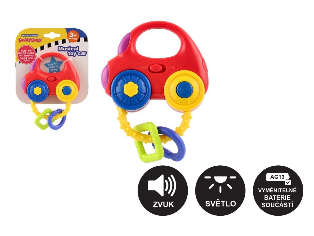 Chrastítko auto plast 10x11cm na baterie se zvukem, světlem na kartě 3m+