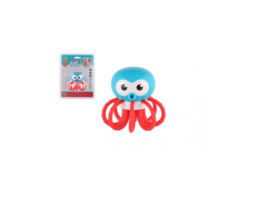 Chrastítko ve tvaru chobotnice potěší každé miminko svým roztomilým vzhledem i jemným chrastivým zvukem. Lehký a dobře uchopitelný tvar padne do malých dětských ručiček a podporuje rozvoj jemné motoriky i sluchového vnímání. Vyrobeno z nezávadného plastu.Velikost hračky: 8 × 8 cm