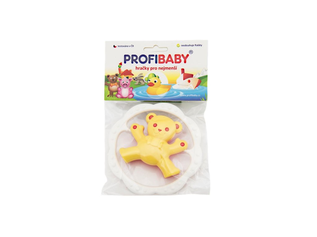 Pestrobarevné chrastítko s motivem medvěda či zajíce. Rozvíjí motorické a zrakové dovednosti dítěte.