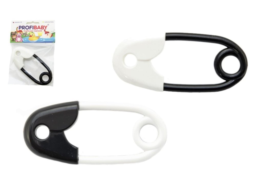 Chrastítko špendlík černobílý plast 12cm 2 barvy v sáčku 0m+