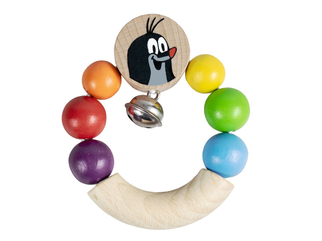 Chrastítko s krtečkem je díky své nízké hmotnosti vhodné pro děti od 6 měsícůDěti zaujme také rolnička, která jemně cinká