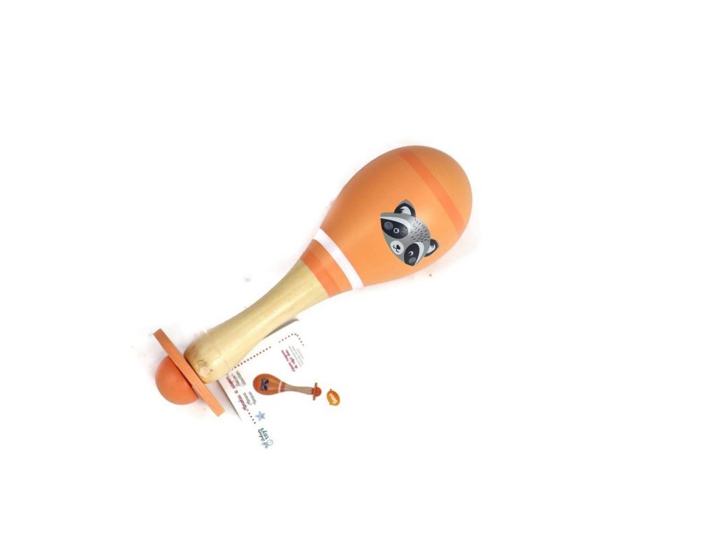 Dřevěné chrastítko rumba koule mýval - oranžová, Adam Toys