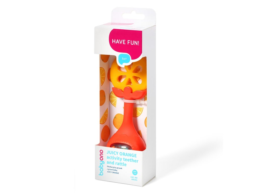 Edukační kousátko s chrastítkem - pomeranč, BabyOno